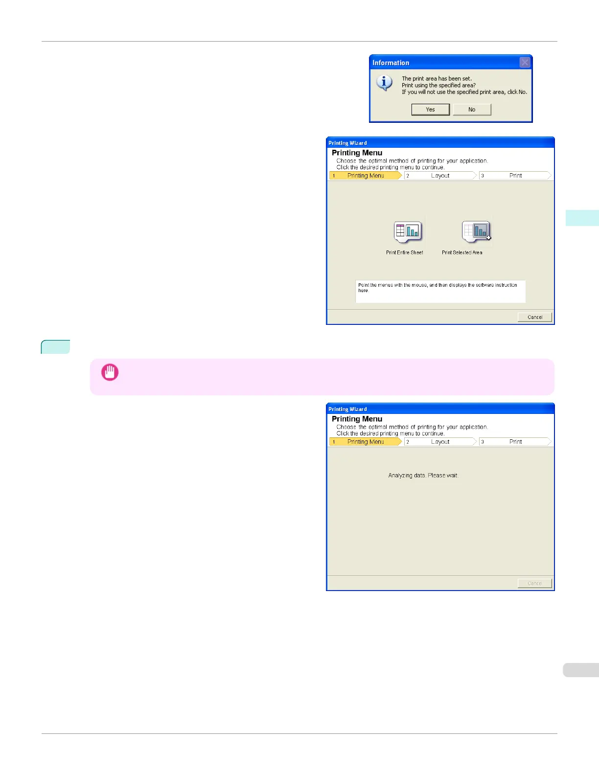 If a print area is set, a confirmation message dialog box will ap-