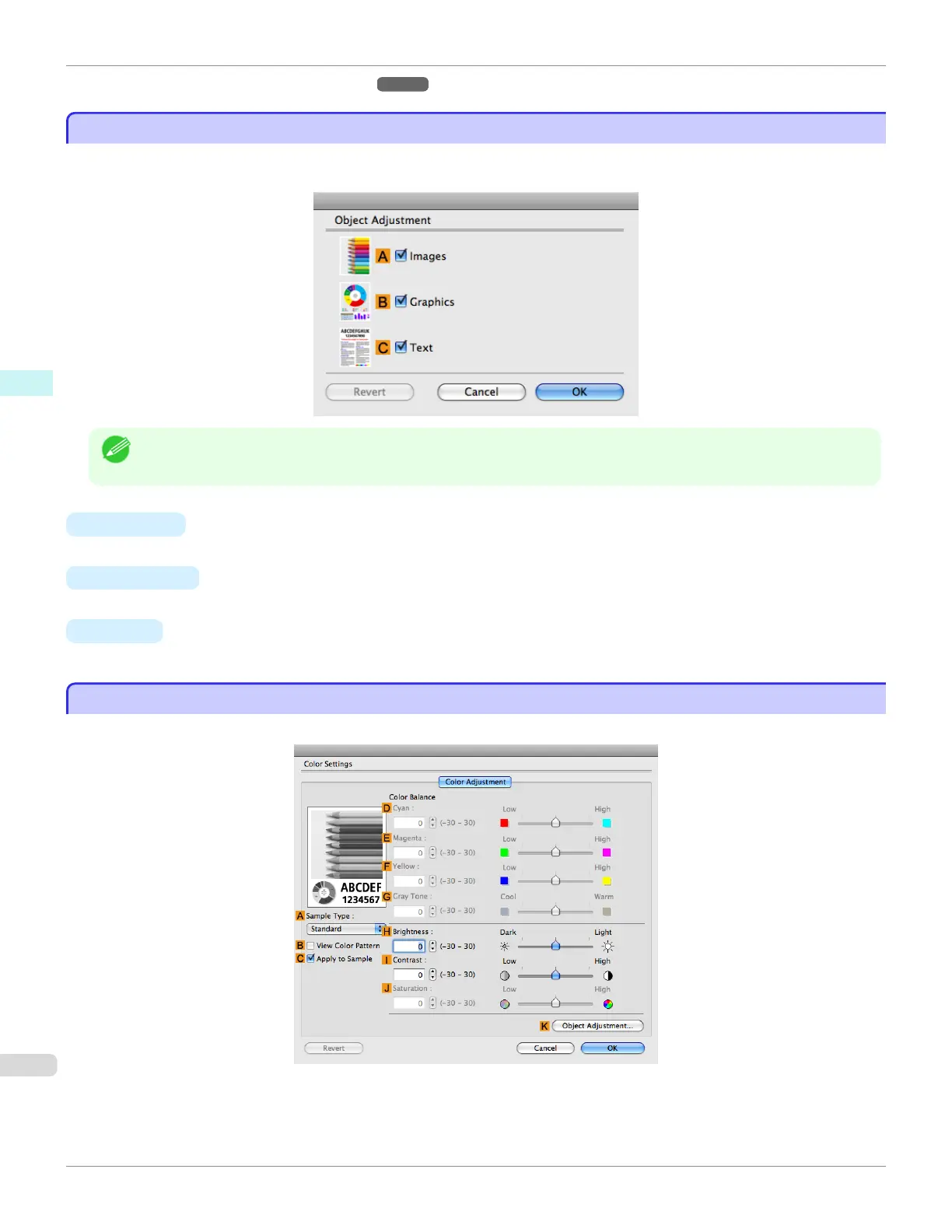 In the Object Adjustment dialog box, you can specify what type of print jobs to apply color adjustment to. If an original