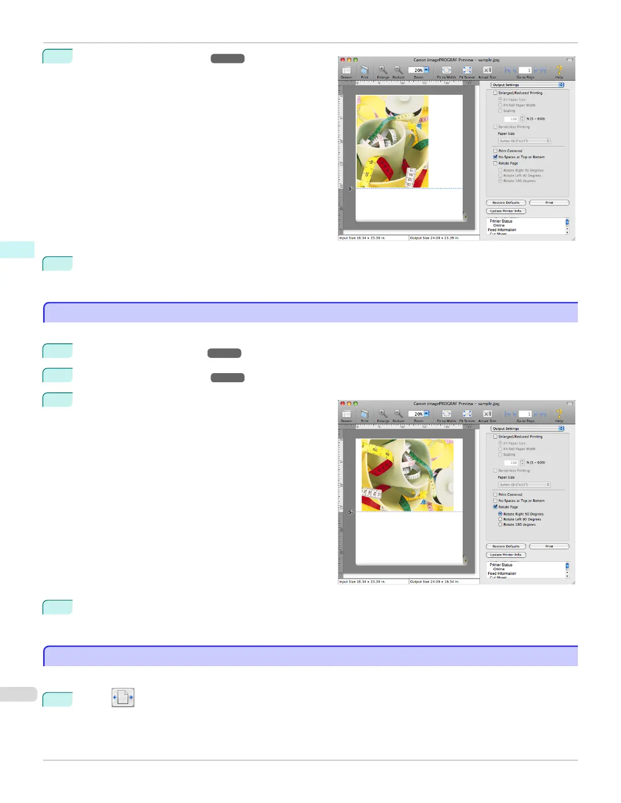On the Output Settings Panel ➔ P.302 , click the Rotate Page check box on.