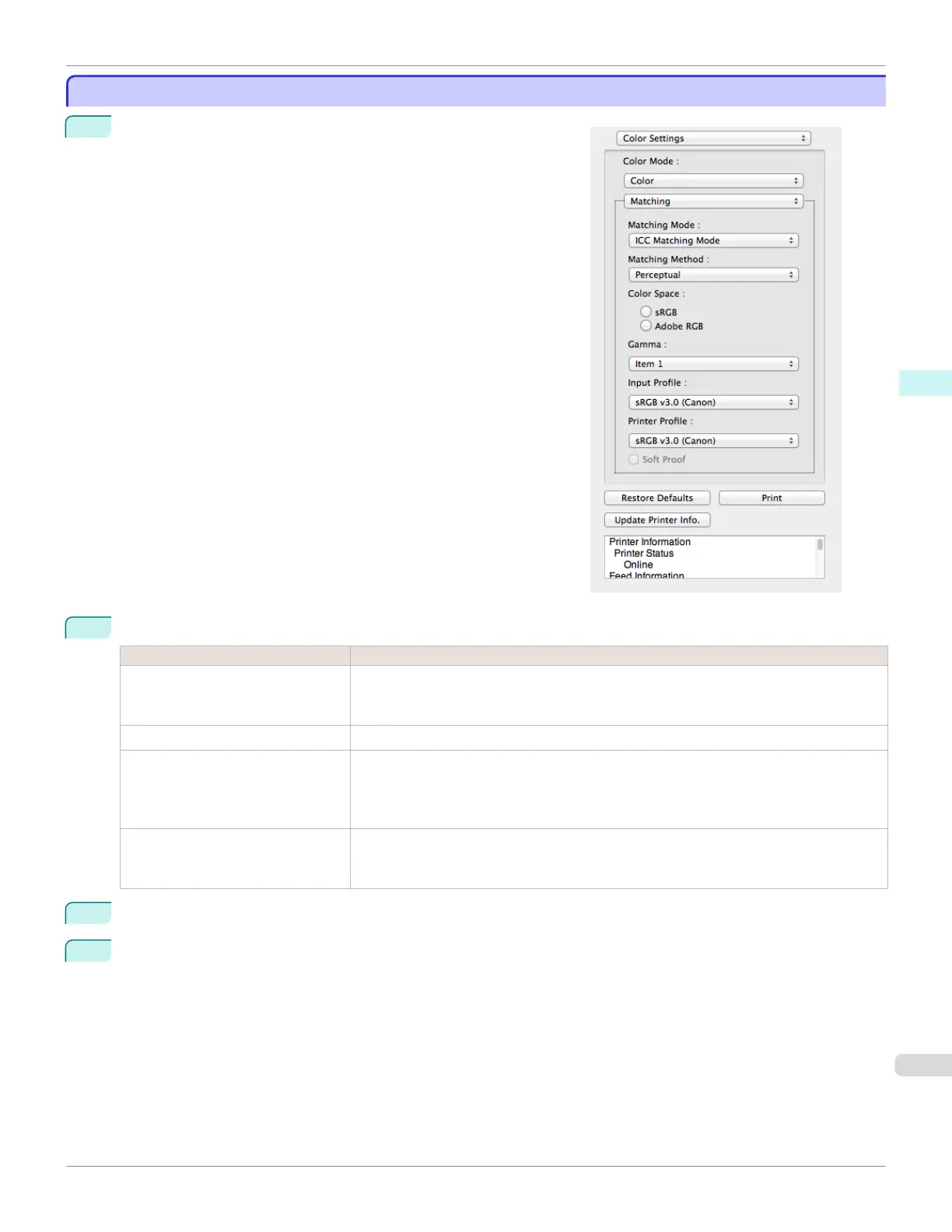 Perceptual Color-matching optimized for printing typical photos attractively. Smooth gradation is a fea-