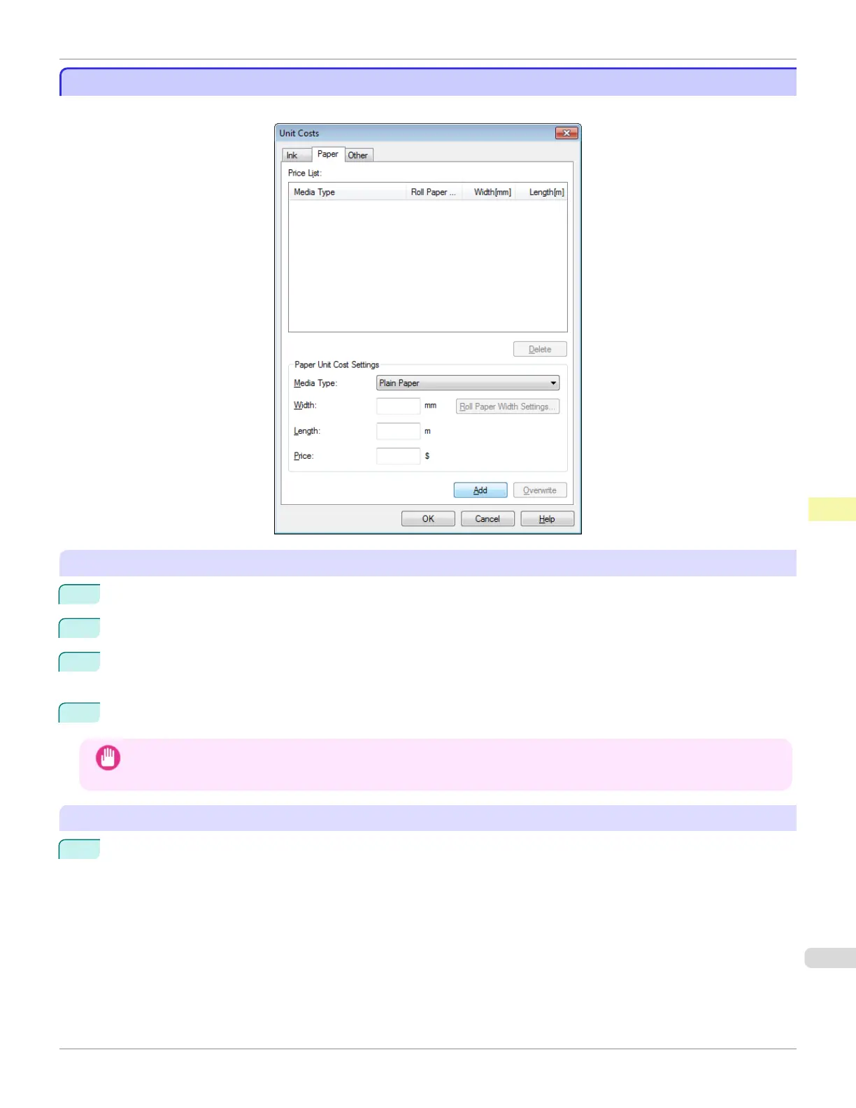 Click the Add button. To change the unit cost of a media type that has already been configured, click the Over-