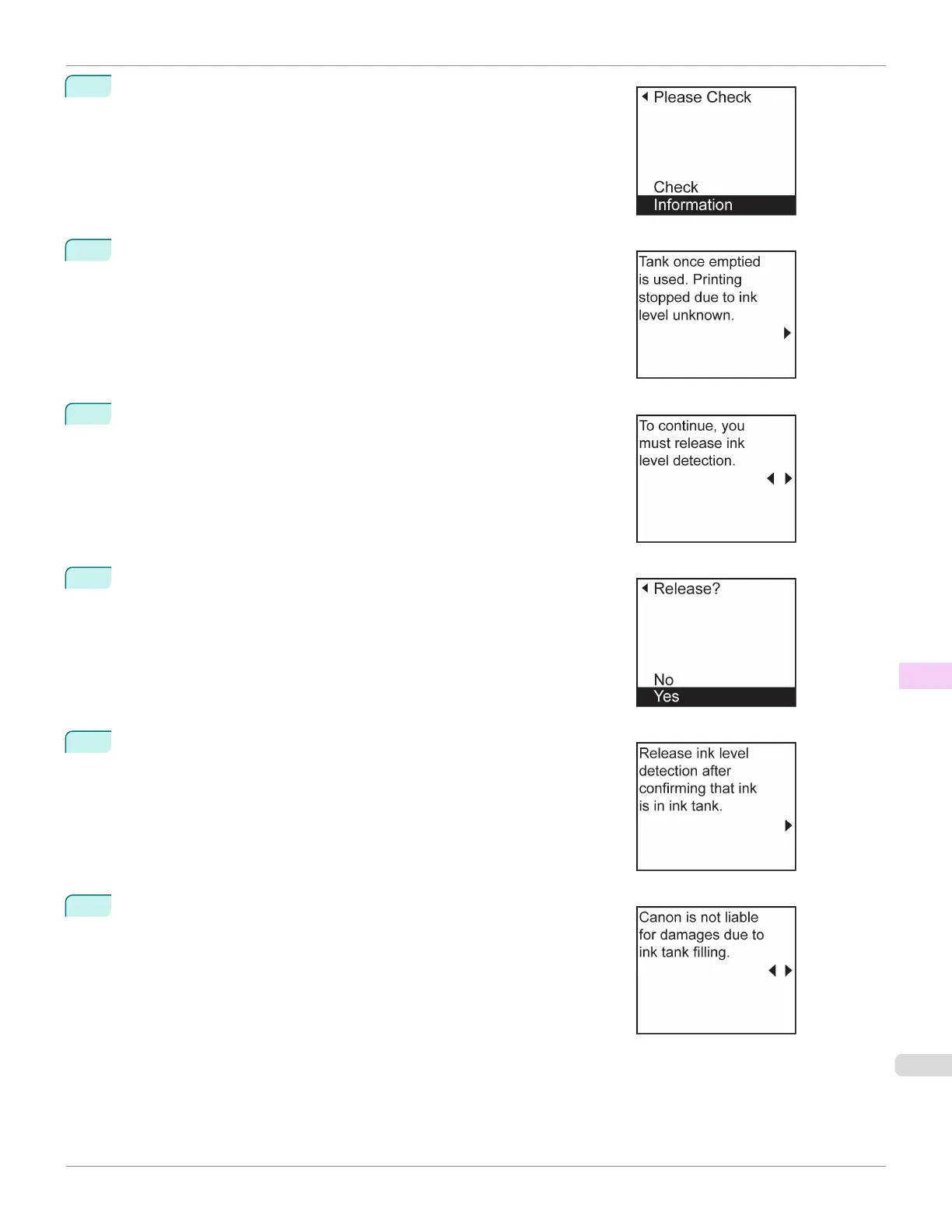 ink level detection. After checking the message, press the ▶ button.
