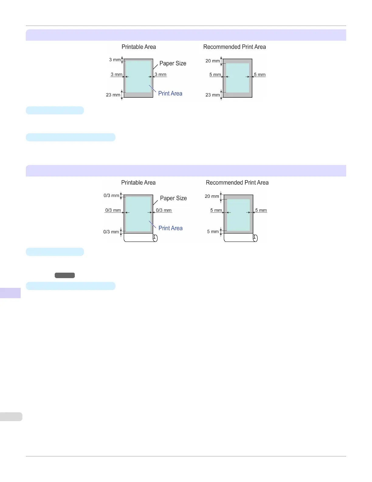 A margin of 3 mm (0.12 in) on all sides is required. During borderless printing, the margin on all sides is 0 mm. For