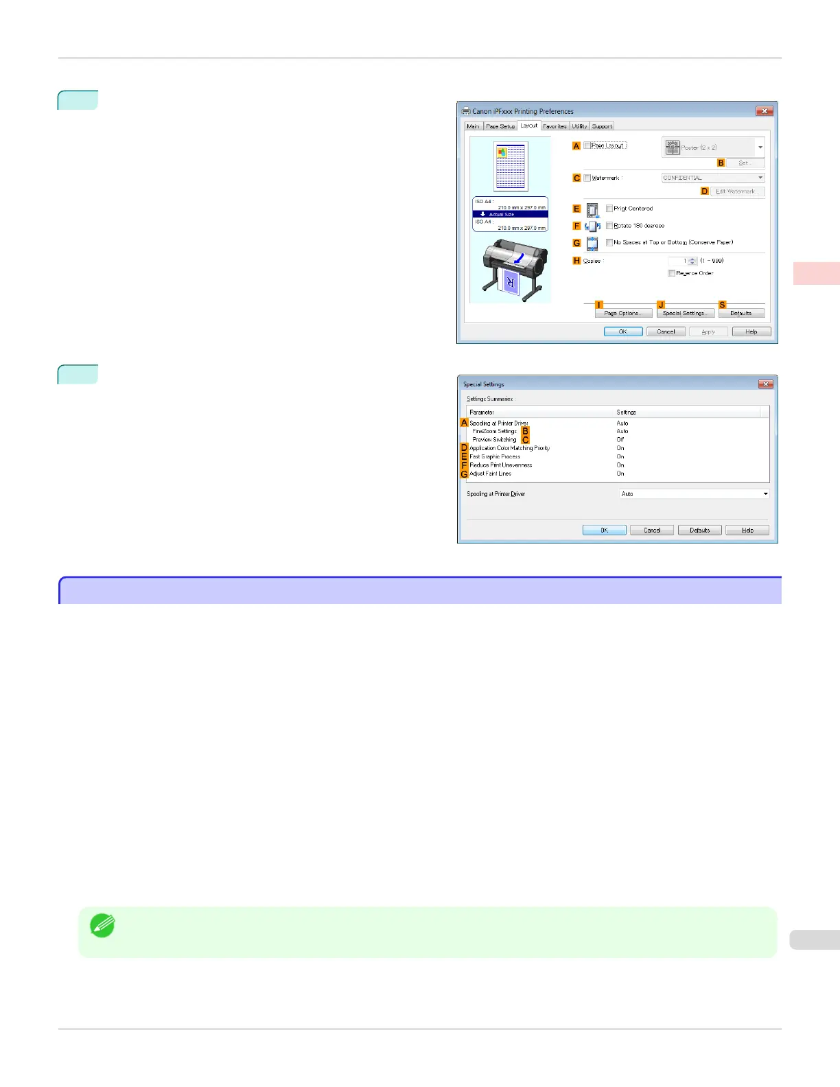 On the Layout sheet, click J Special Settings to dis-