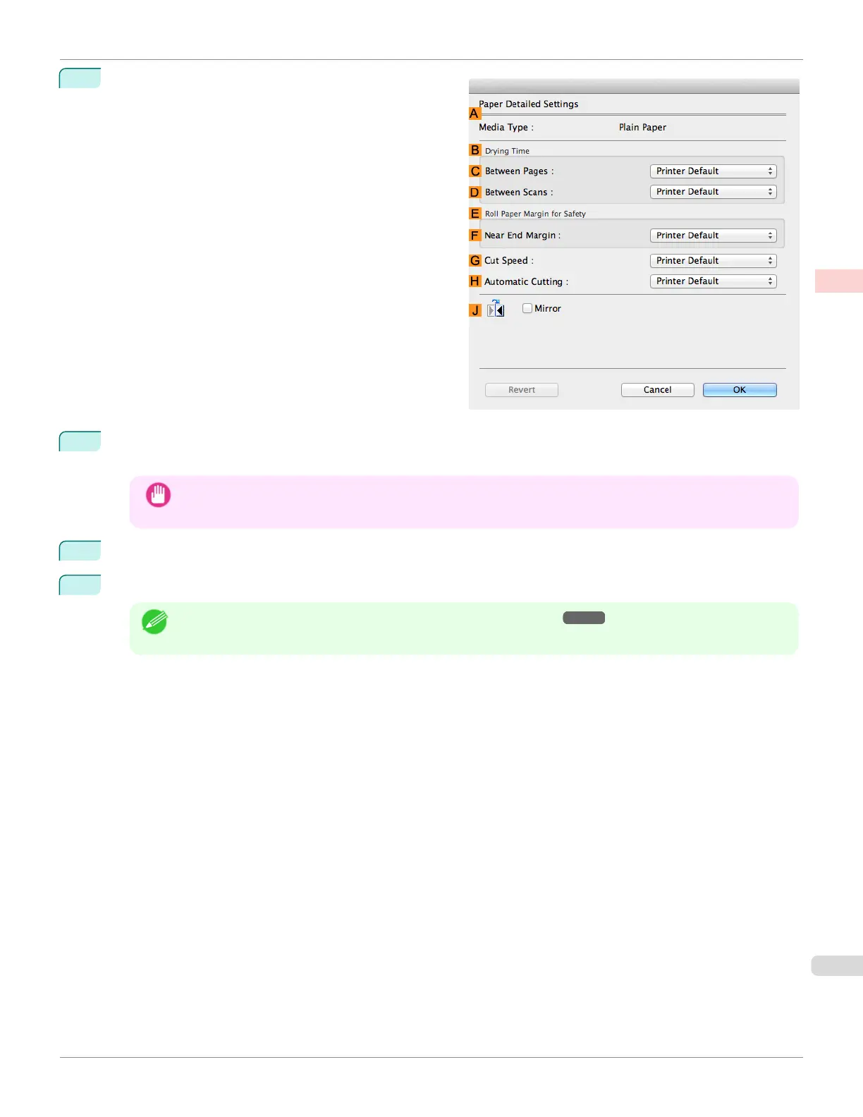 To enable automatic cutting, click Printer Default in the H Automatic Cutting list. If you prefer to cut the pa-
