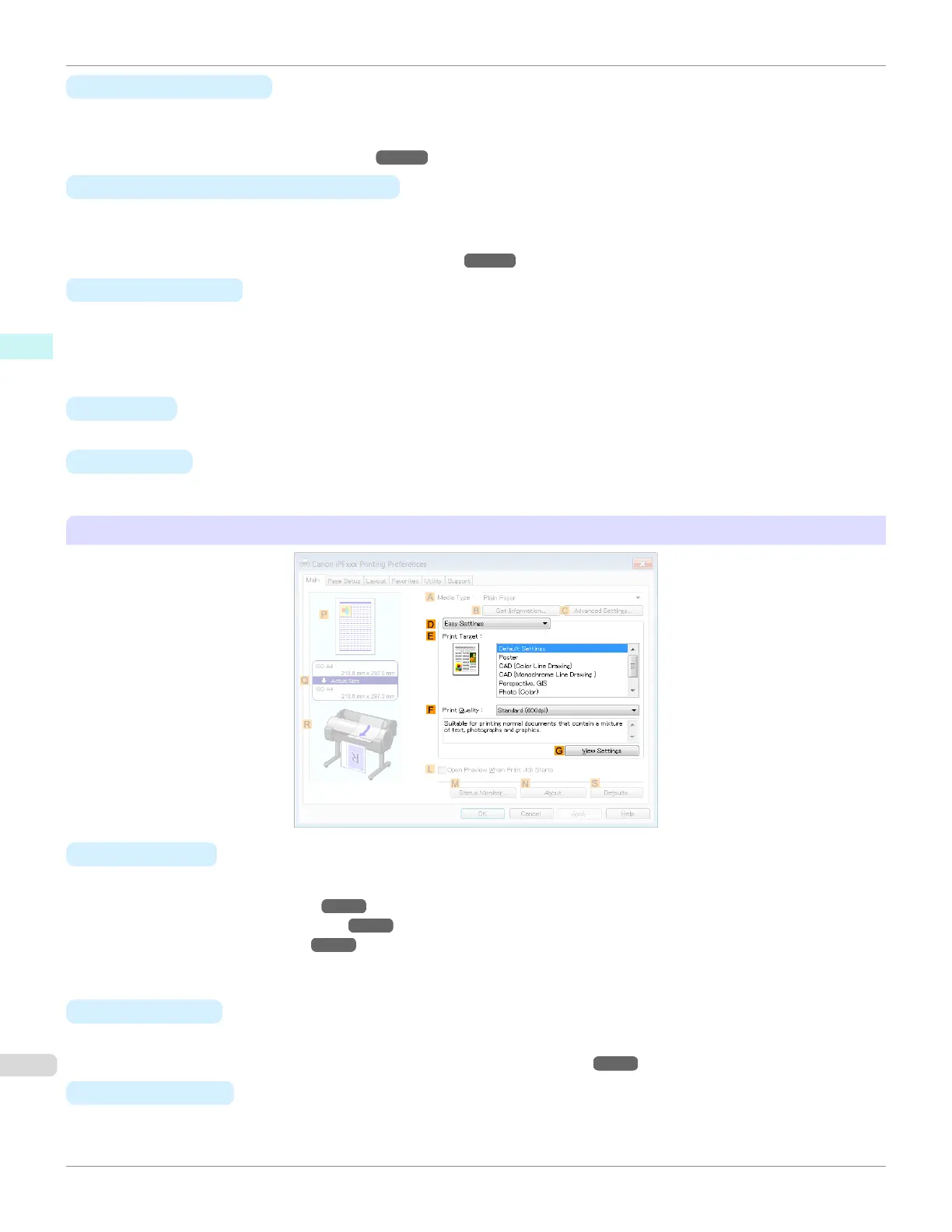 Displays Paper Detailed Settings. You can configure the printing settings to match the type of media, such as the