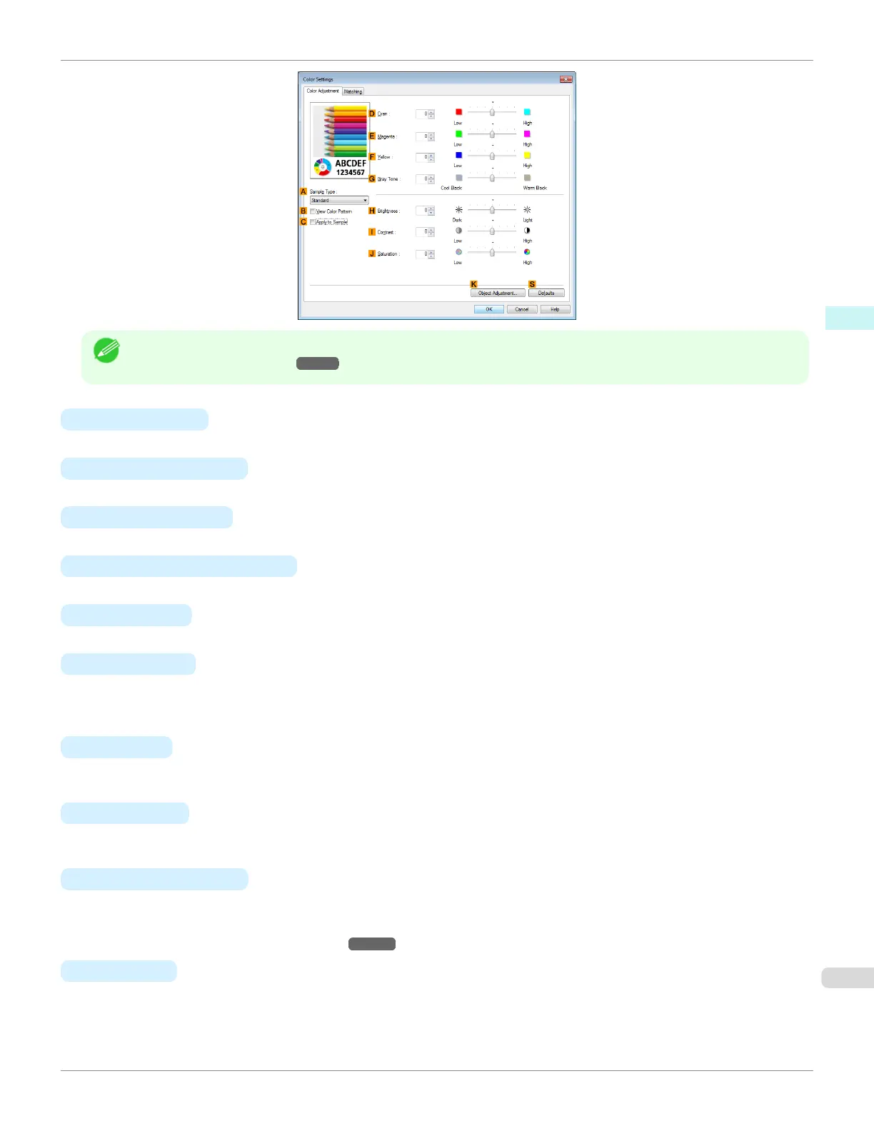 • To display the Color Adjustment sheet, on the Main sheet, click Color Settings by Color Mode in Advanced Set-