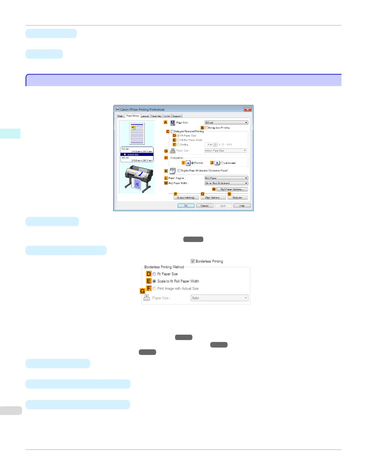 Borderless Printing by Resizing Originals to Fit the Roll Width ➔ P.90