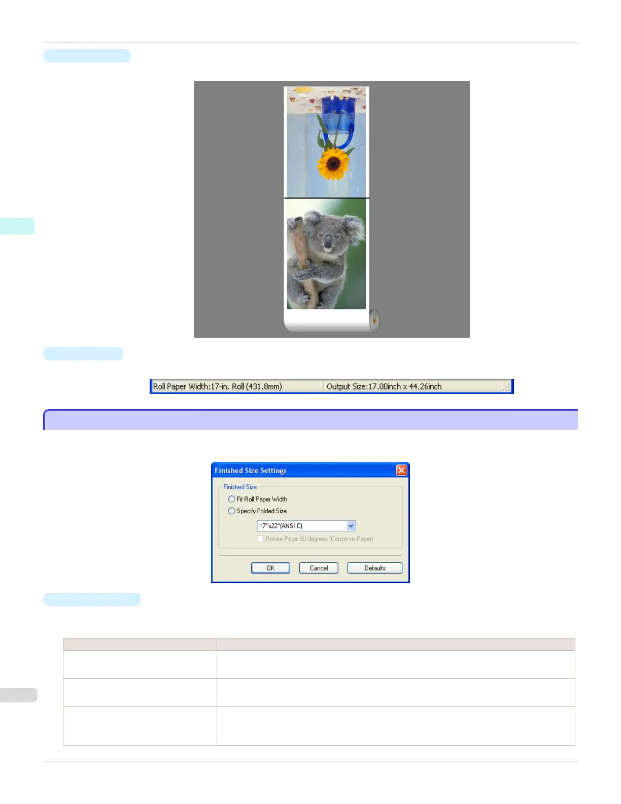 Fit Roll Paper Width Prints by automatically enlarging or reducing the entire document so that the width of the