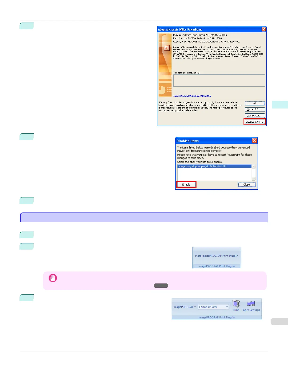 • If the imagePROGRAF Print Plug-In toolbar/ribbon is not displayed, refer to the following.
