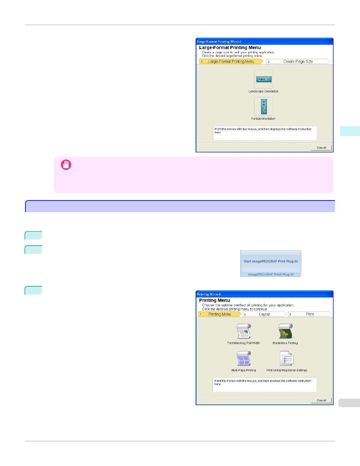 • If you want to change the display to another file or application while the Large-Format Printing Wizard is