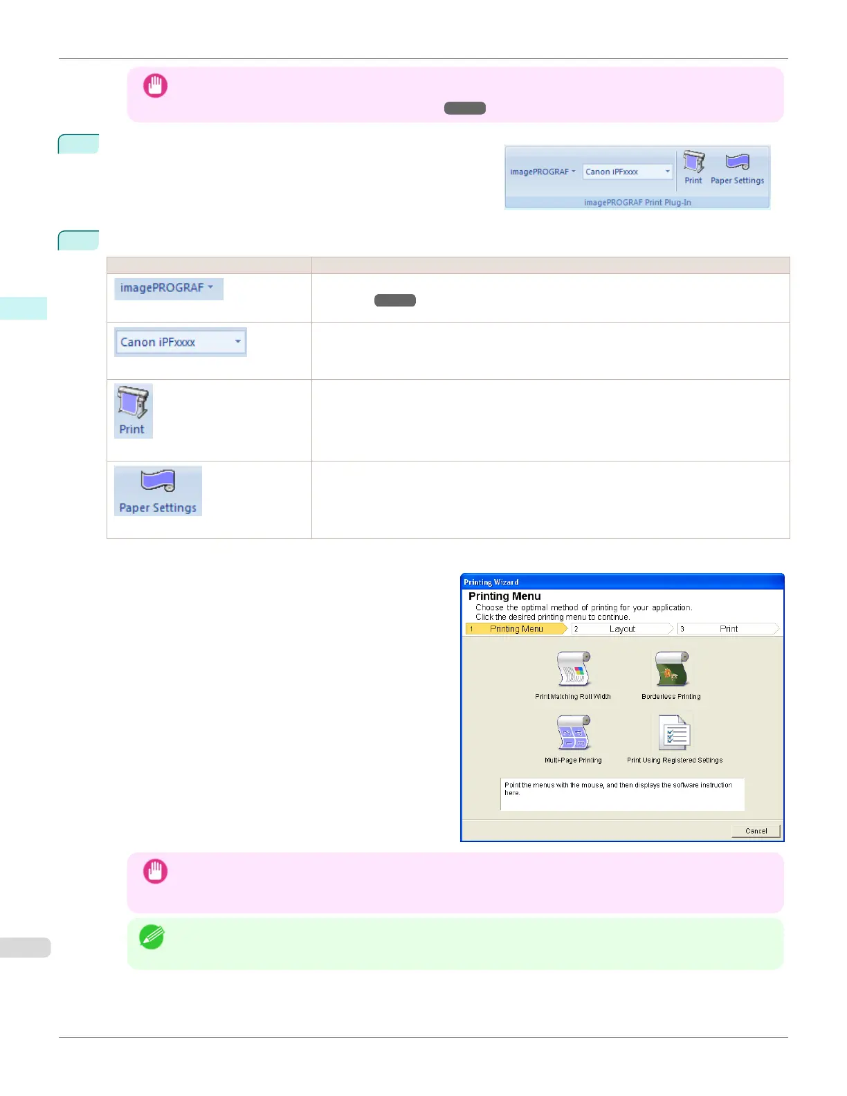 • If the imagePROGRAF Print Plug-In toolbar/ribbon is not displayed, refer to the following.