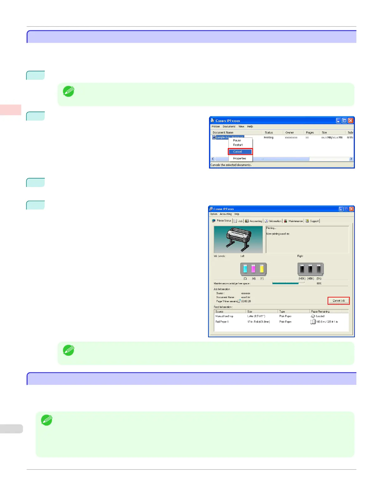 Using imagePROGRAF Status Monitor, you can cancel print jobs that have already been received by the printer or