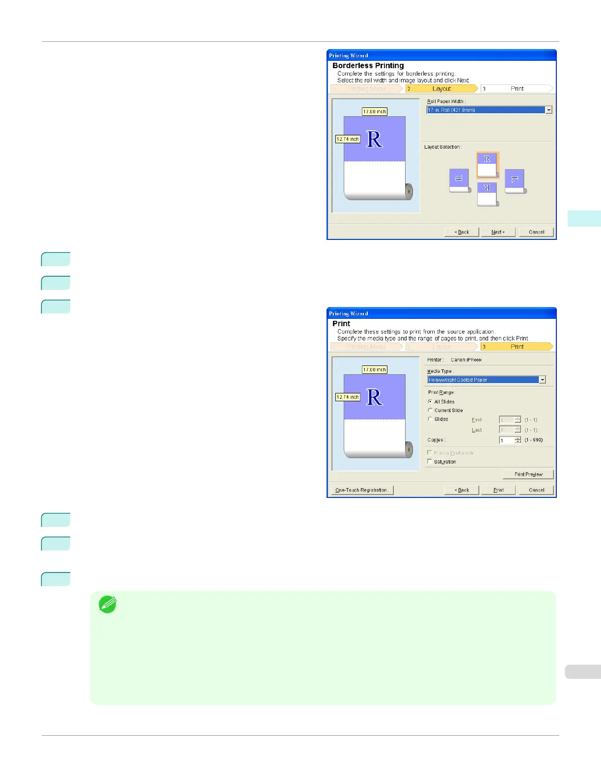 • The maximum length for Borderless Printing is the lesser of 14.22 times the roll paper width, or 18.0m.