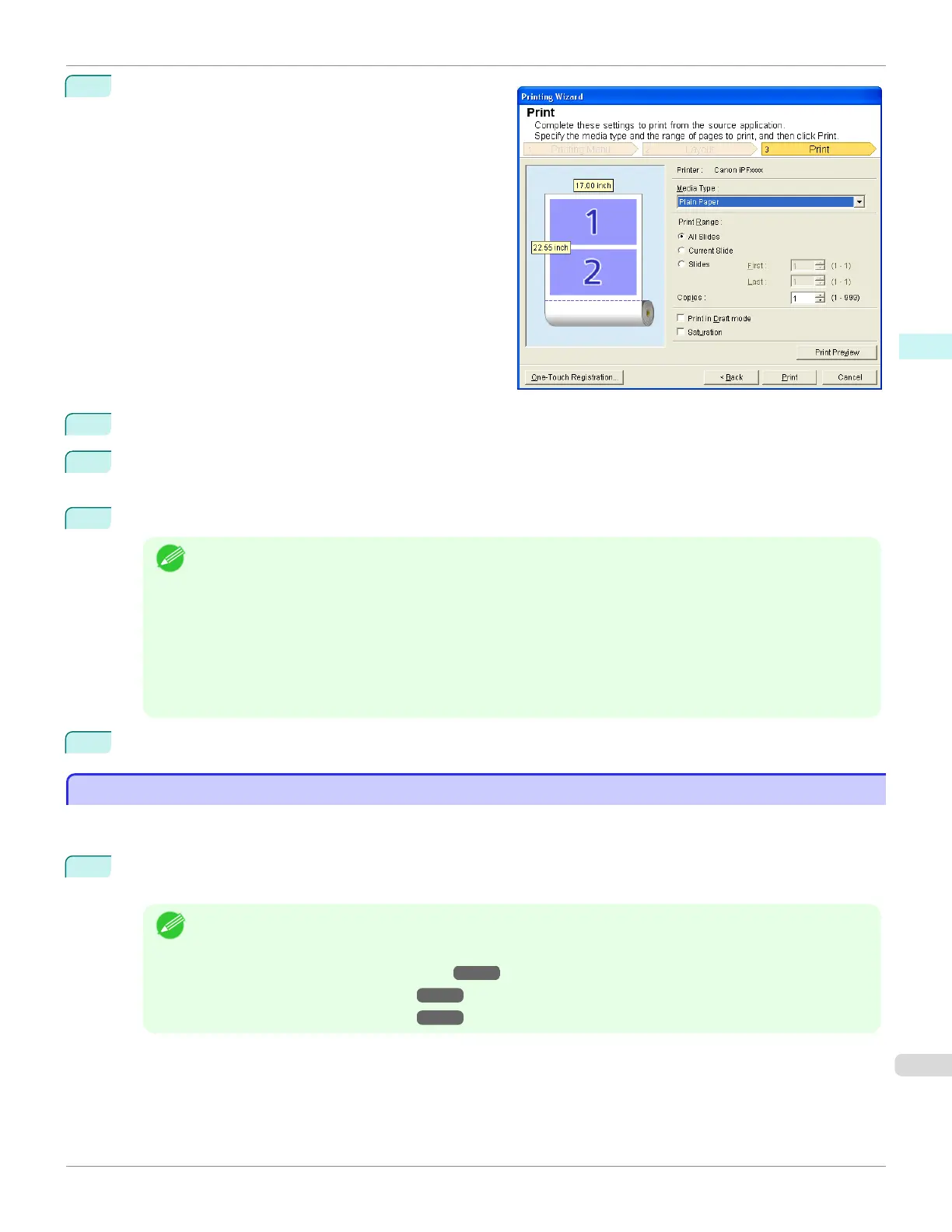 Set up to the Print screen from Print Matching Roll Width,Borderless Printing or Multi-Page Printing of