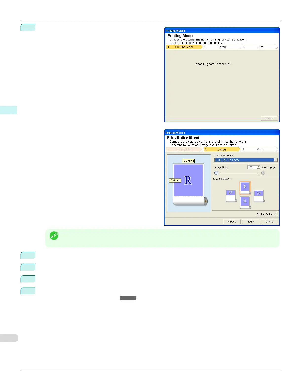 • If data analysis requires time, a message dialog will appear. If you select No, you will return to the application.
