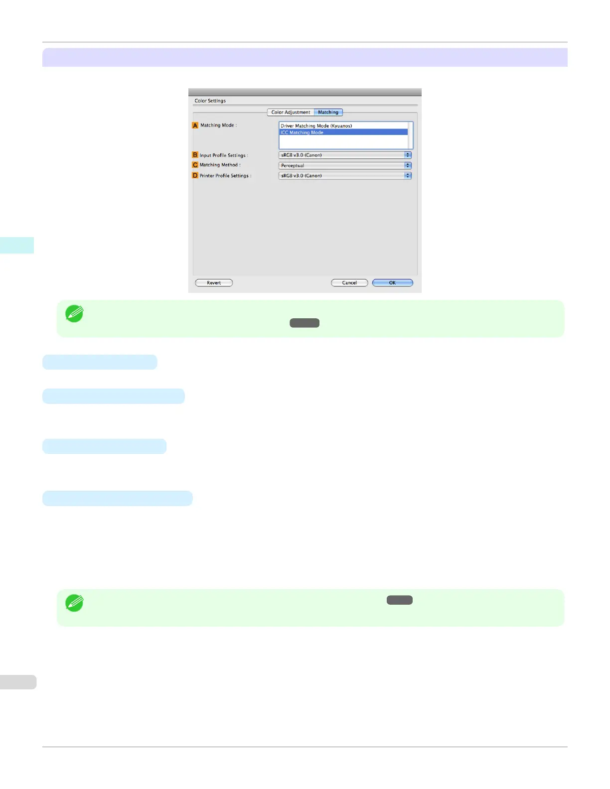 • To display the Matching pane, on the Main pane, click Color Settings by Color Mode in Advanced Settings, and