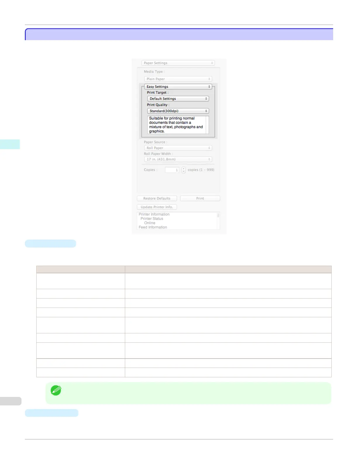 Default Settings Suitable for printing normal documents that contain a mixture of text, photographs, and