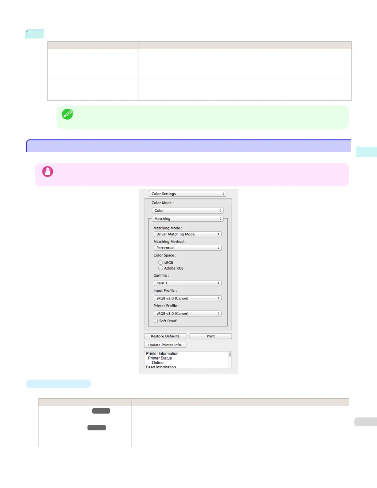 Driver Matching Mode ➔ P.311 Enables printing of optimal color tones using a driver specific color profile. You should nor-