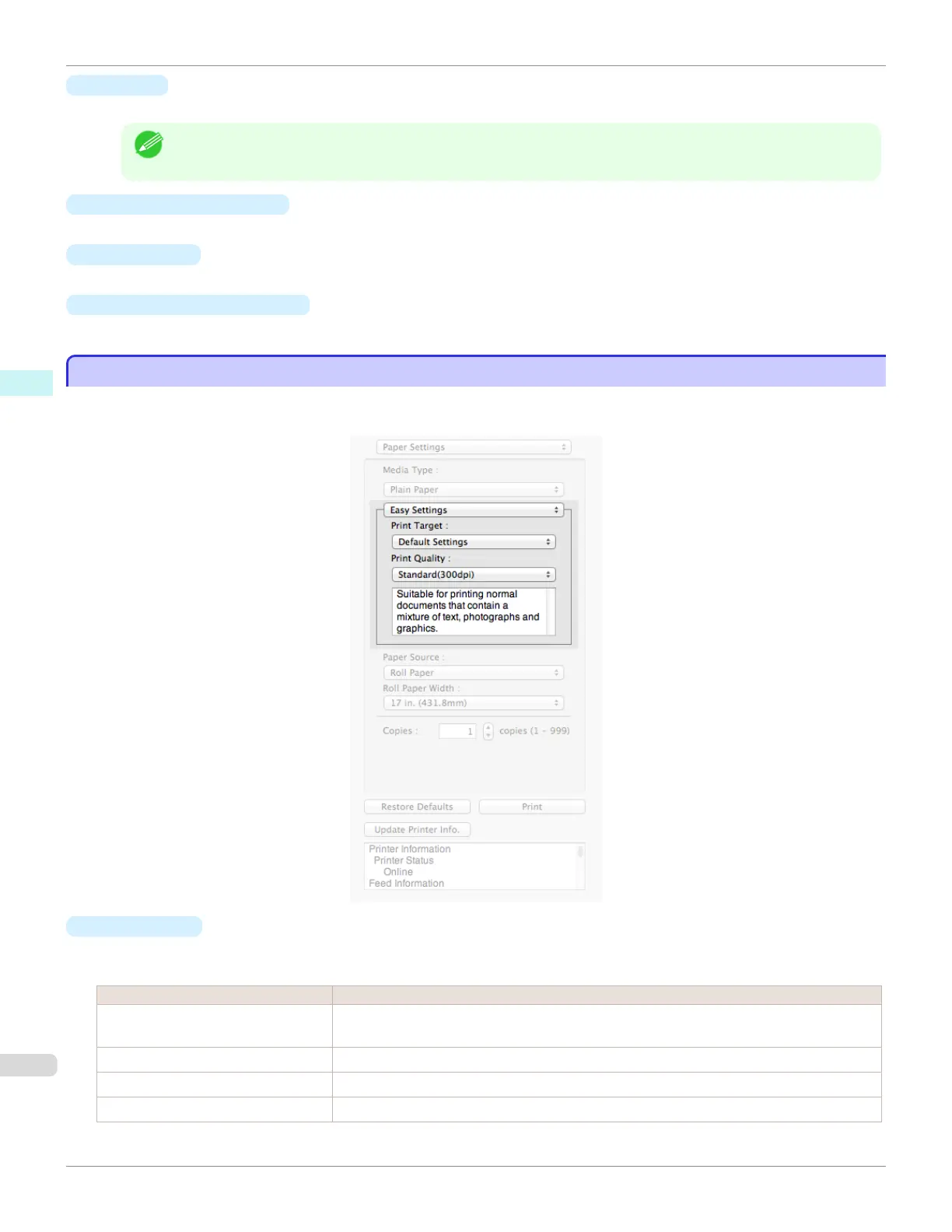 Default Settings Suitable for printing normal documents that contain a mixture of text, photographs, and
