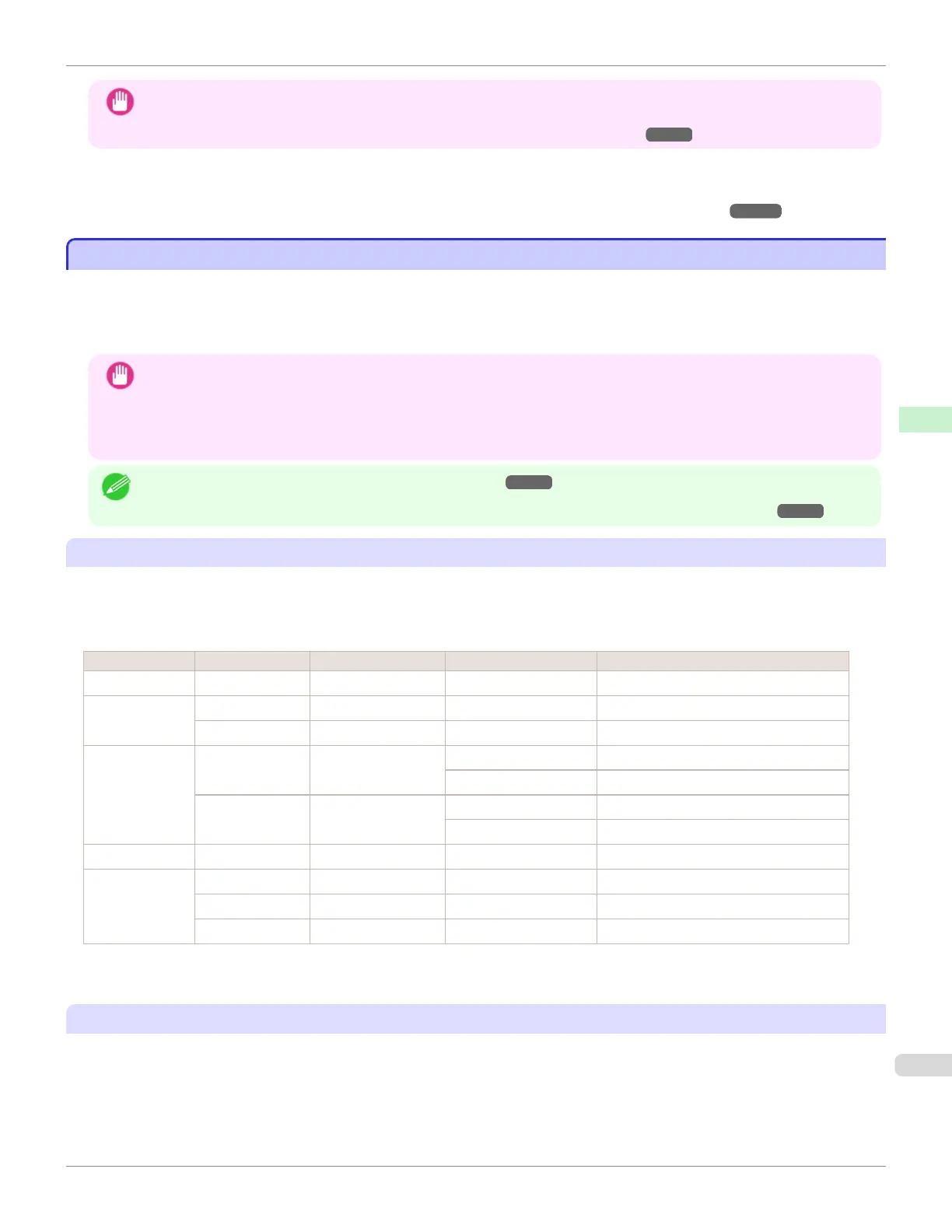 these settings will make it difficult for bleeding ink and the printhead rubbing to occur. Refer to the following table for