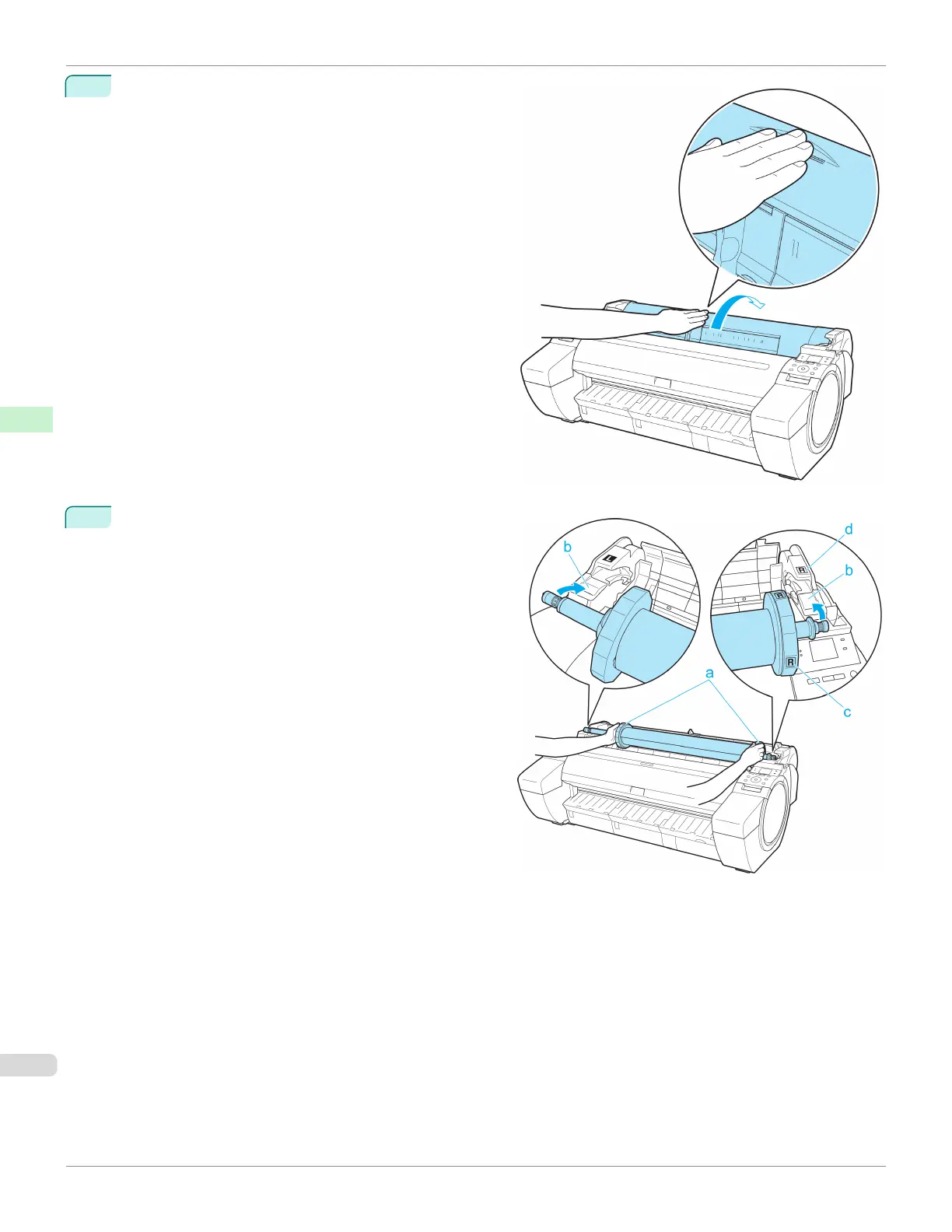Positioning your hands as shown, open the Roll Cover.