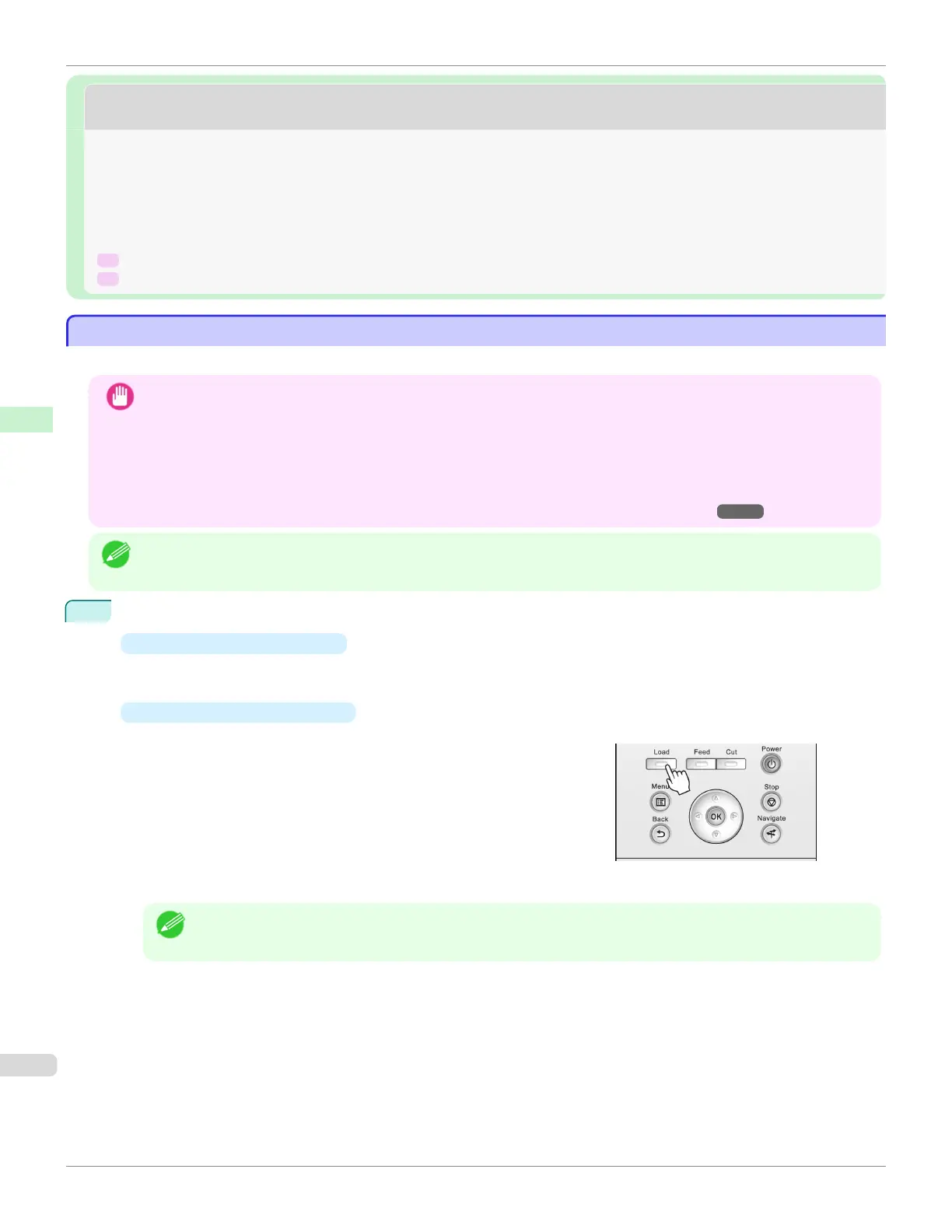 • Before feeding paper or printing, make sure the sheet is flat against the Roll Cover. The sheet may jam if it curls