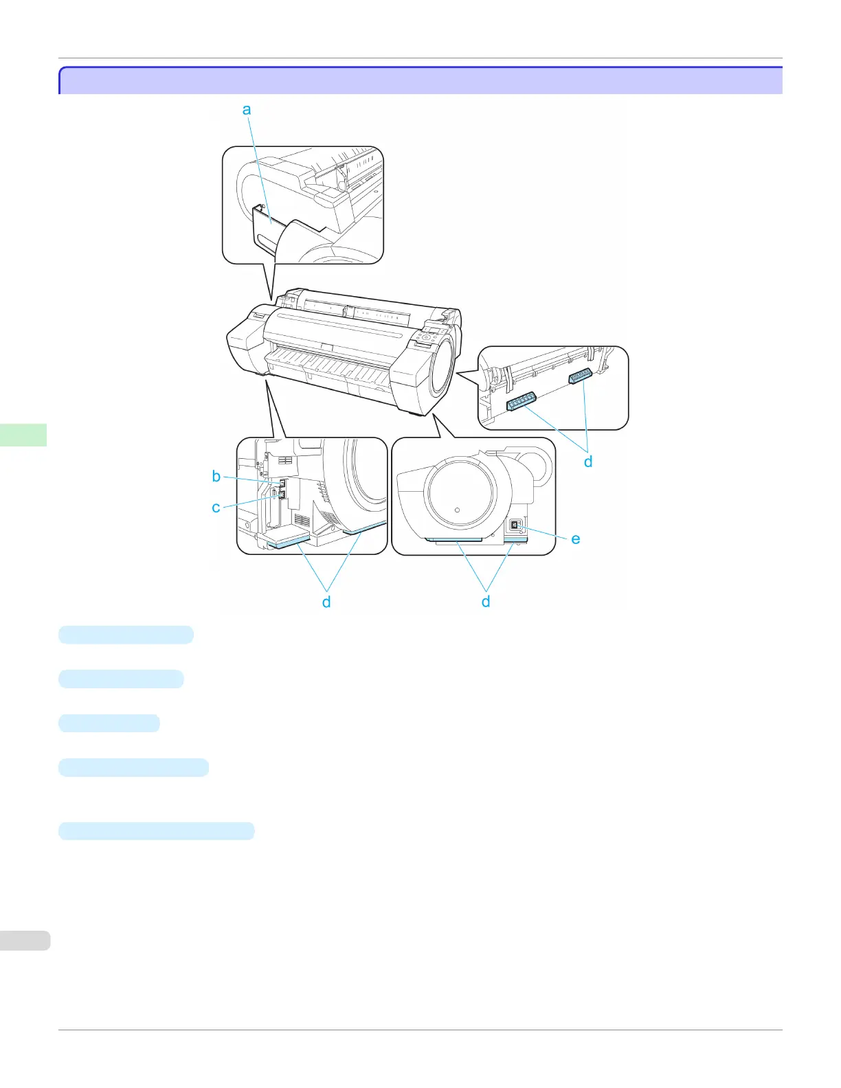 Grasp these parts on the left and right sides also when moving the printer with the stand attached.