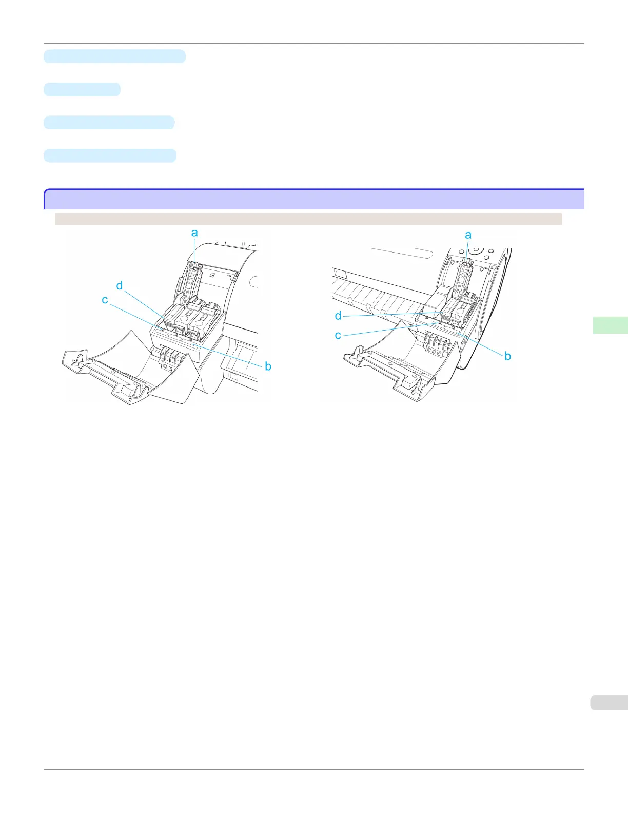 A lever that locks the Ink Tank in place and protects it. Lift and press down the lever when replacing an Ink Tank.