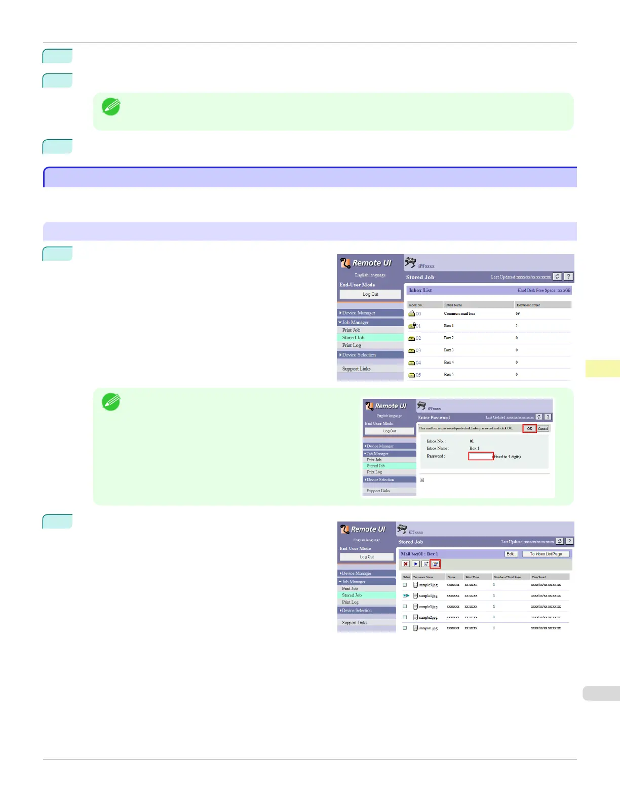 Details of print jobs stored on the printer's hard disk (saved jobs) can be displayed as follows.