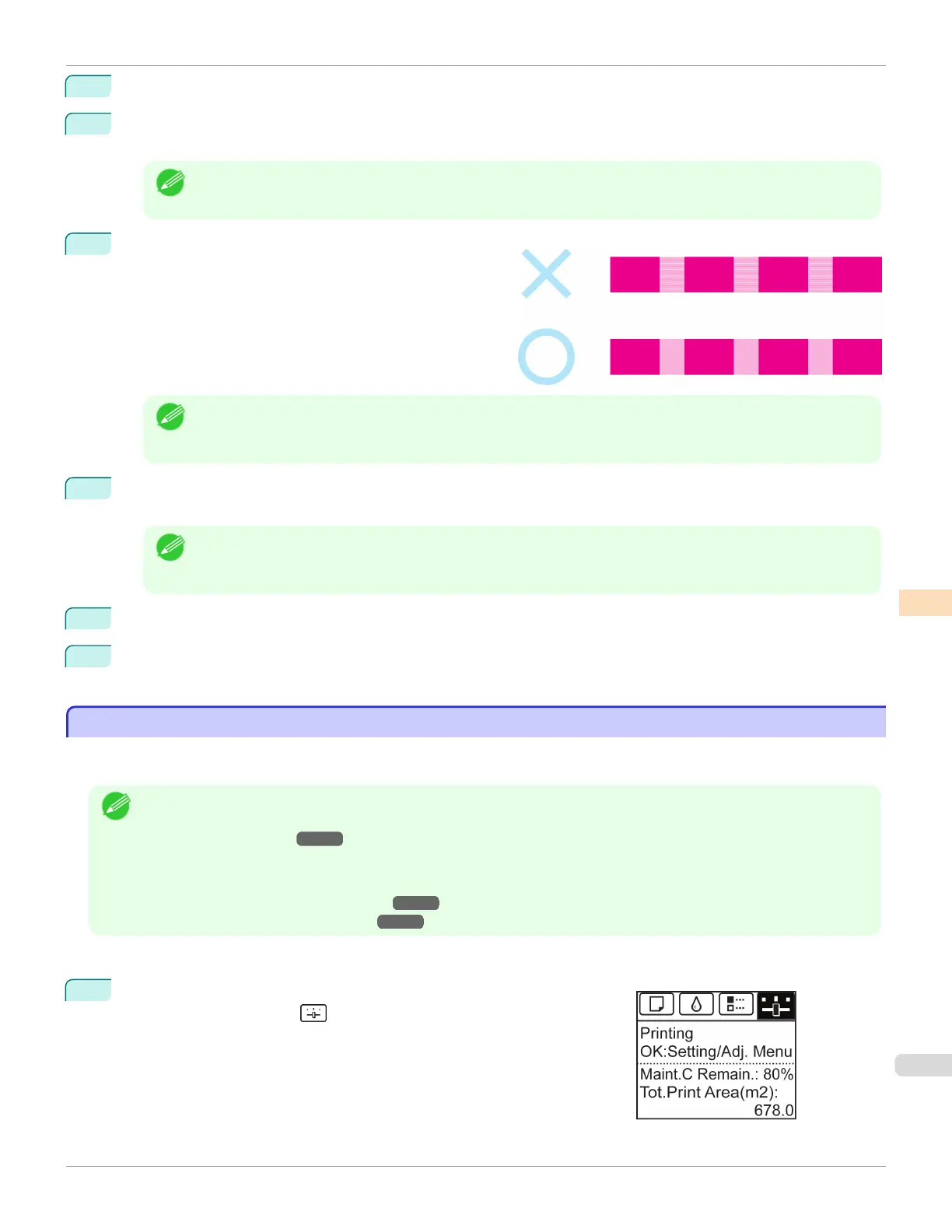 Additionally, after test pattern B is printed, follow the instructions on the Display Screen and remove the sheet.