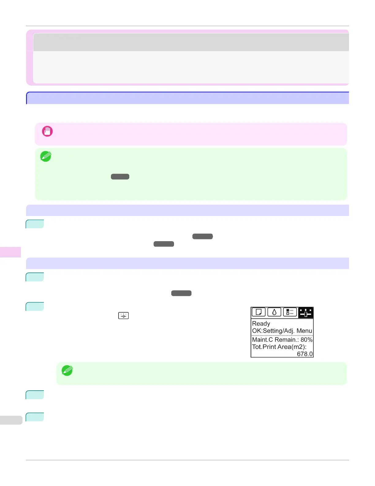 Note that replacement is not required if there is 80% or more free space. (See "Checking the Remaining Maintenance