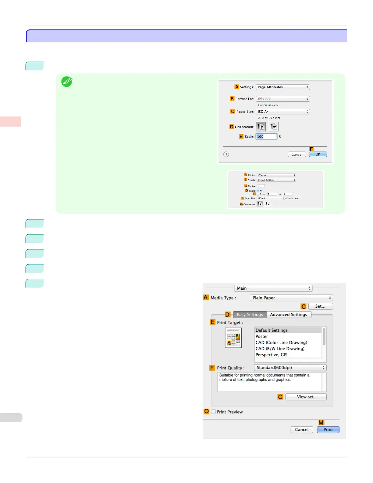 Choosing the Document Type and Printing Conditions (Mac OS)