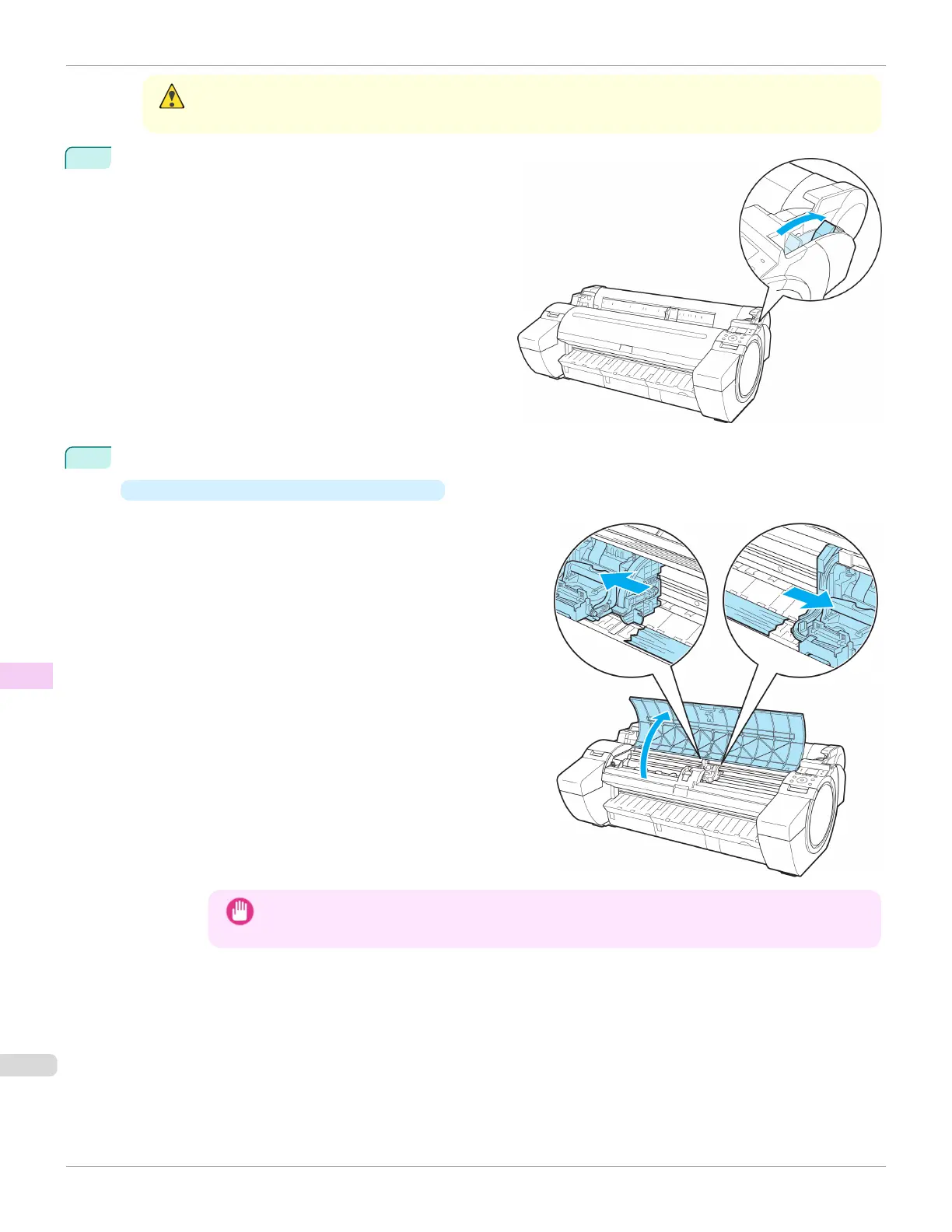 • Do not move the Carriage over jammed paper. This may damage the Printhead.