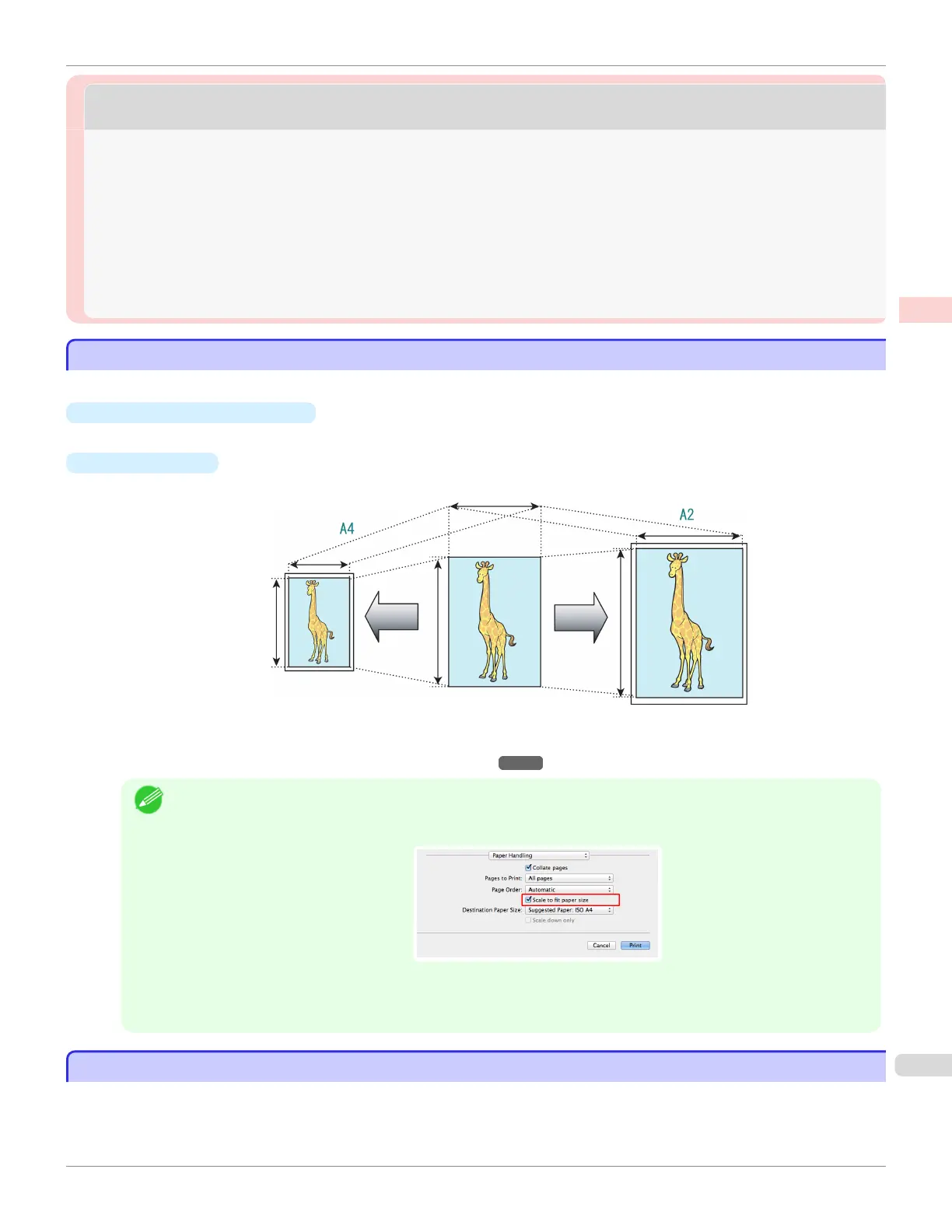 • To print with resizing to fit the paper size on Mac OS, use Scale to fit paper size in the Paper Handling panel