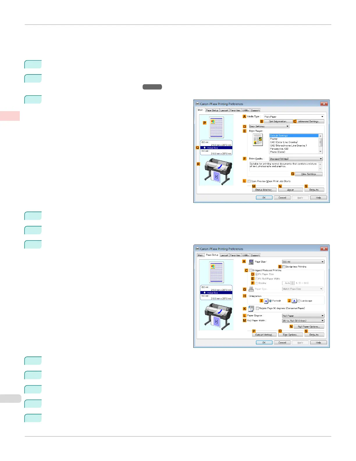 Select the printer in the dialog box, and then open the printer driver dialog box. (See "Accessing the Printer