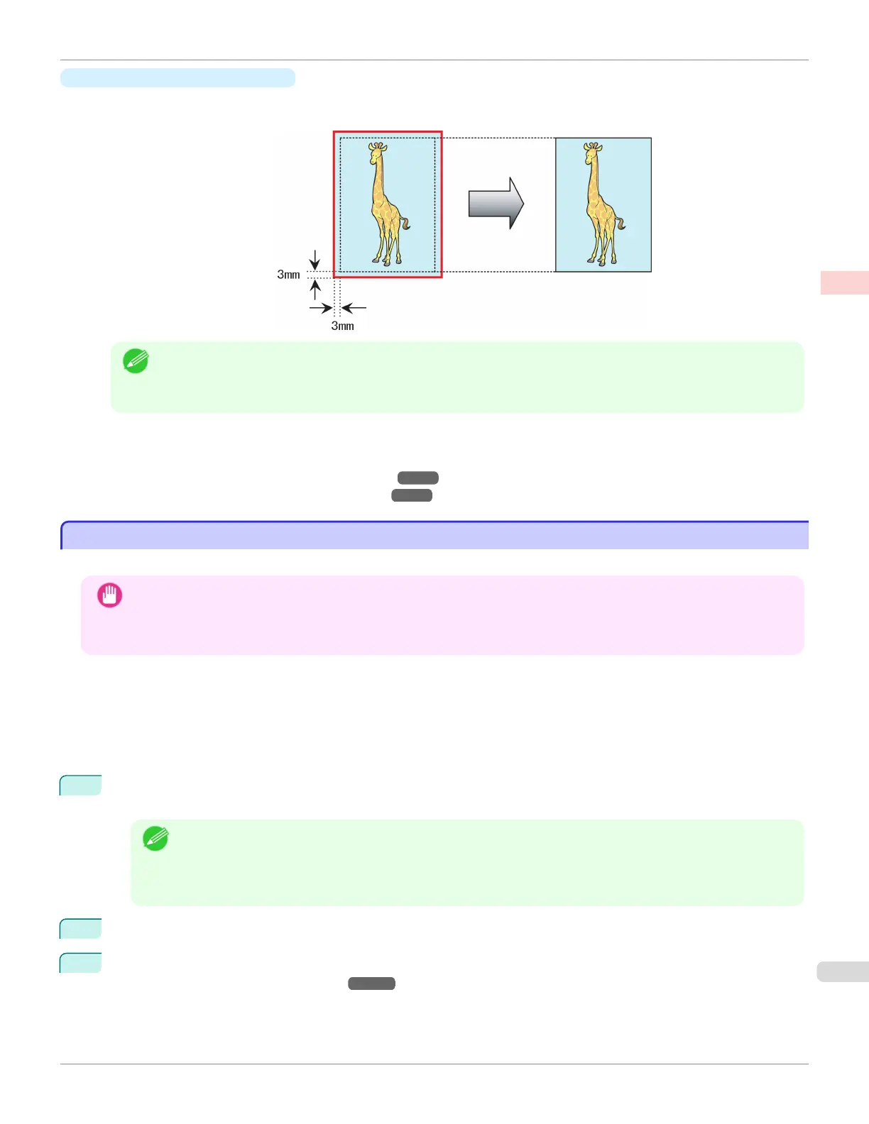 • When performing borderless printing without using Print Image with Actual Size, the image deteriorates slightly
