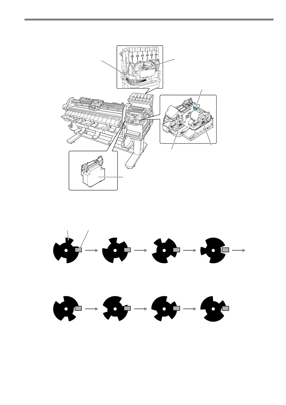 As the cam rotates, it shields the sensor light of the photointerrupter-based pump cam sensor or allows it to be transmitted. the status of the purge unit, such as