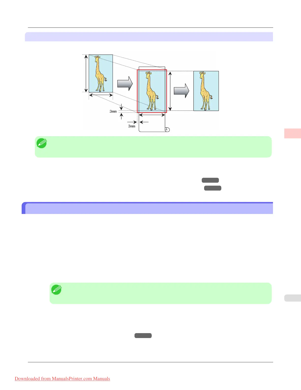printer driver automatically enlarges originals 3 mm (0.12 in) past the dimensions of the paper on each