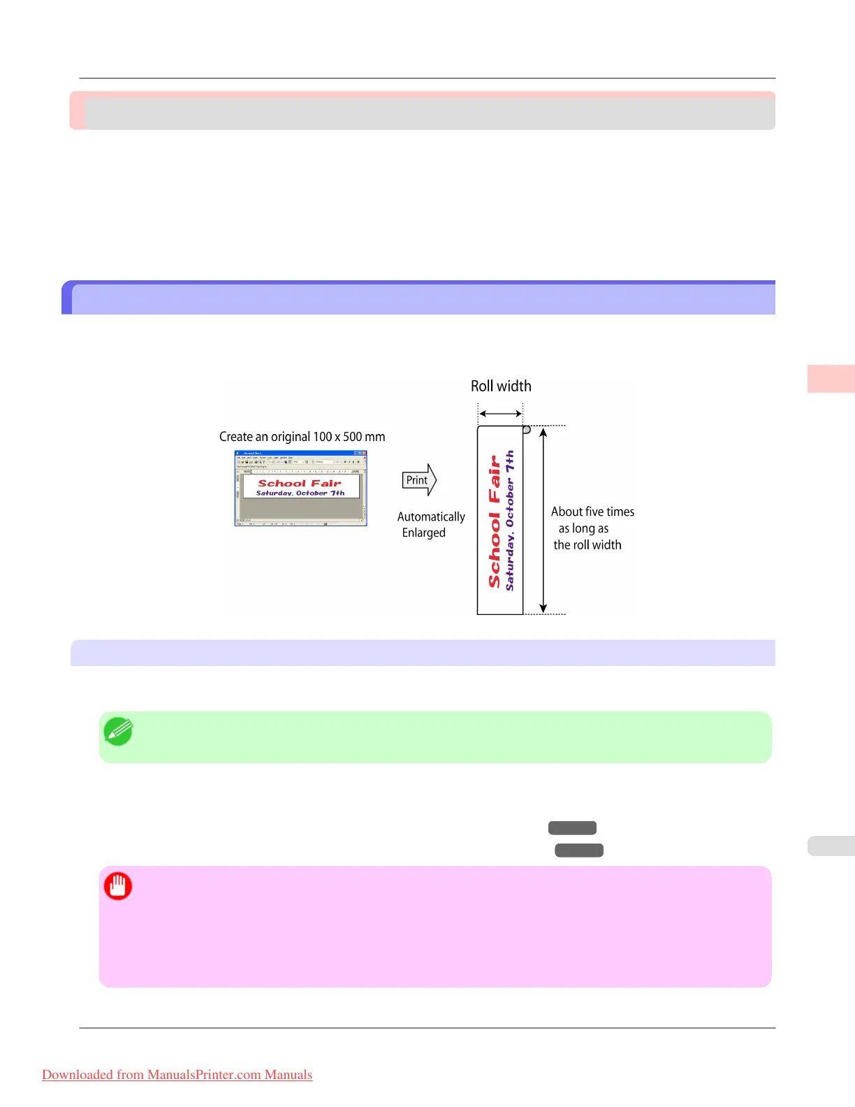 You can create vertical or horizontal banners by printing originals that are in banner format on rolls.