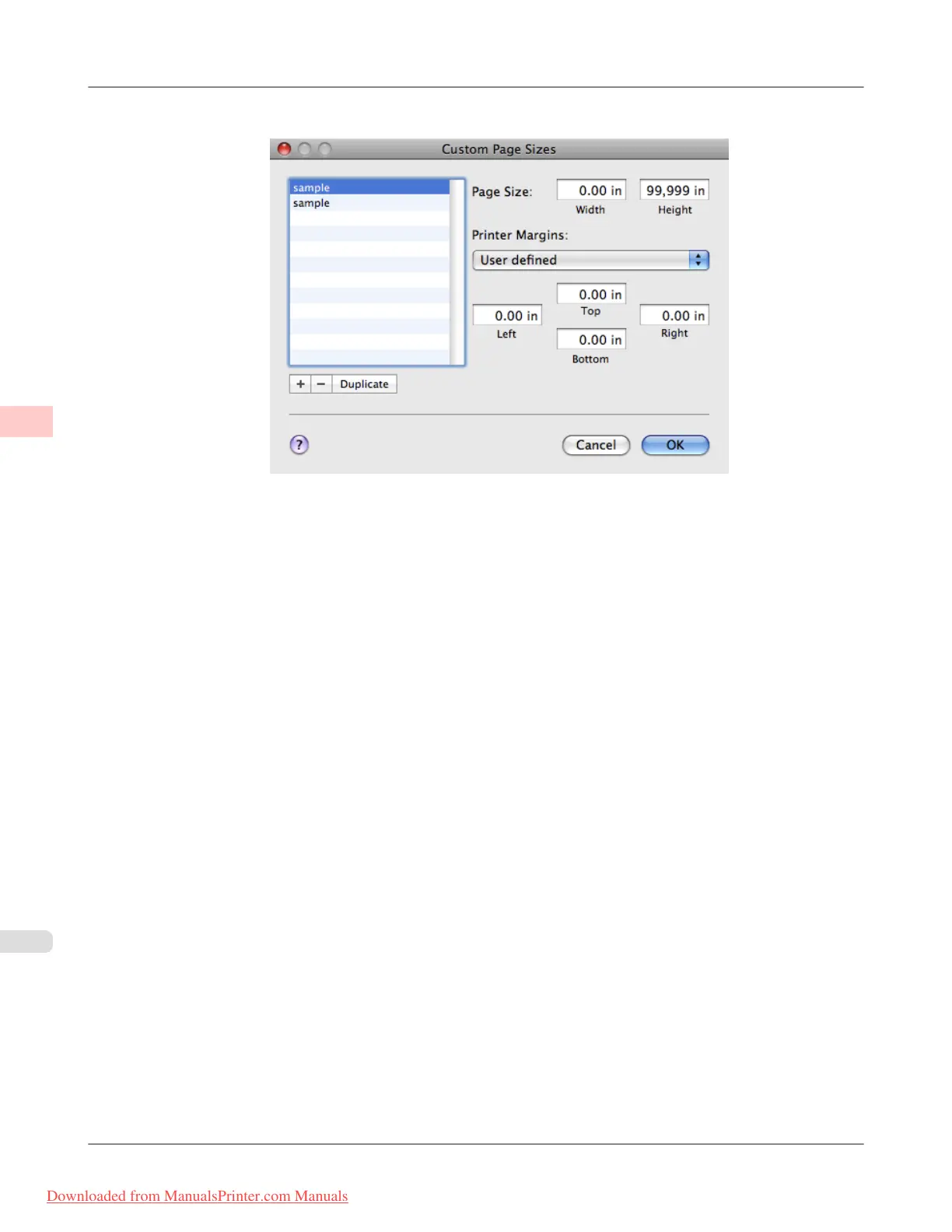 5. Click Manage Custom Sizes in the C Paper Size list to display the Custom Page Sizes dialog box.