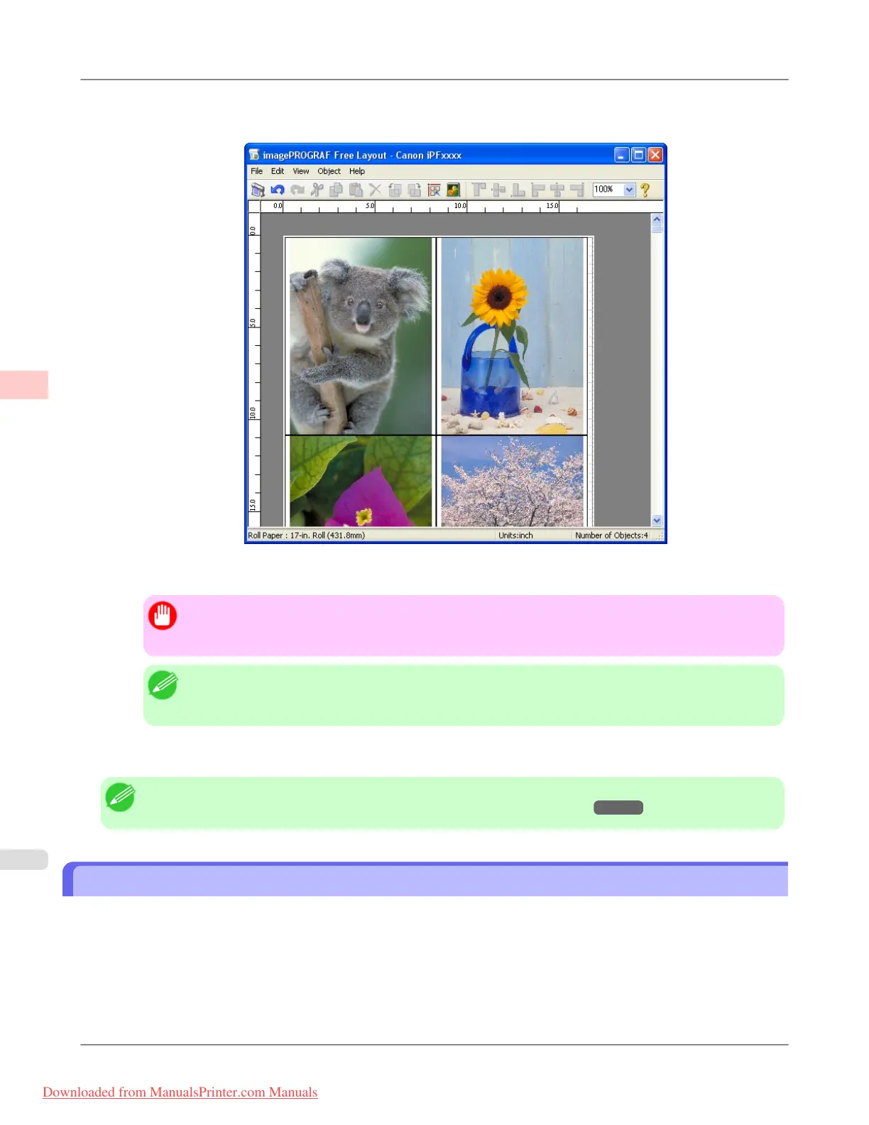 • For details on imagePROGRAF Free Layout functions, refer to Free Layout