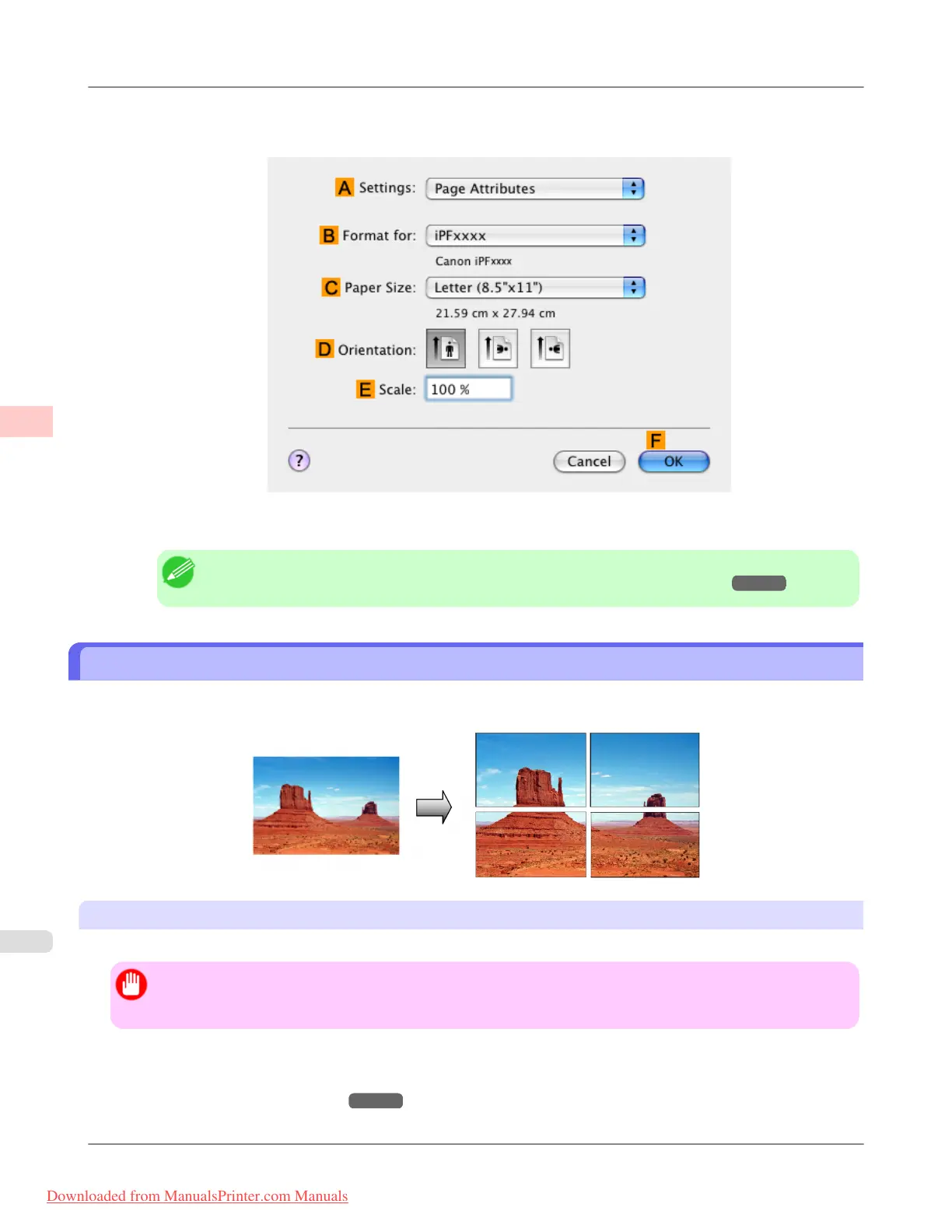 You can enlarge an original to print it in sections on several sheets. By assembling the printed sheets, you can create a post-
