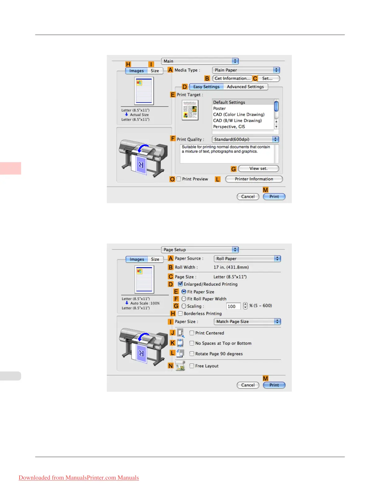 Conserving Roll Paper by Printing Originals Without Top and Bottom Margins (Mac OS X) iPF815