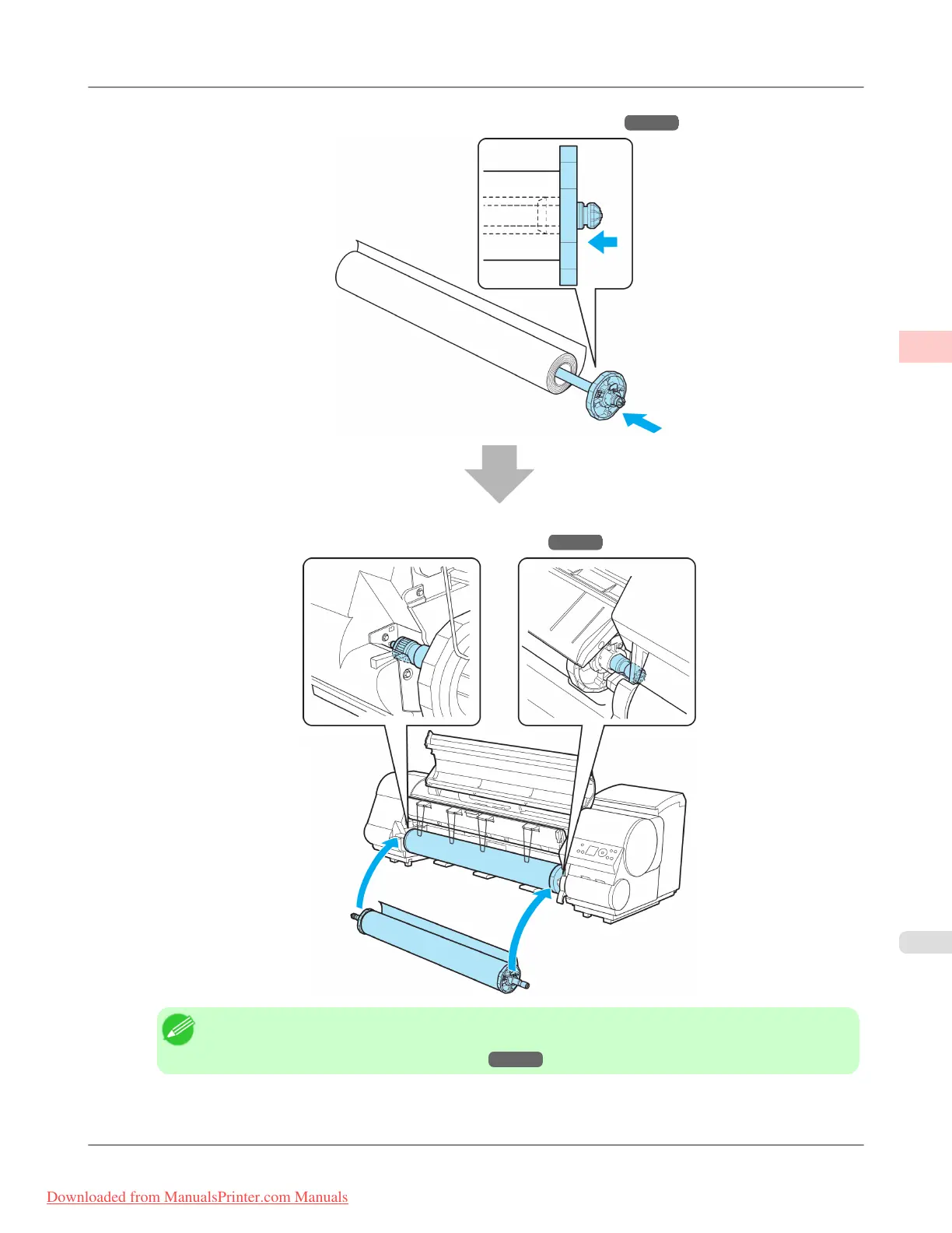5. Load the roll in the printer. (See "Loading Rolls in the Printer.") →P.628