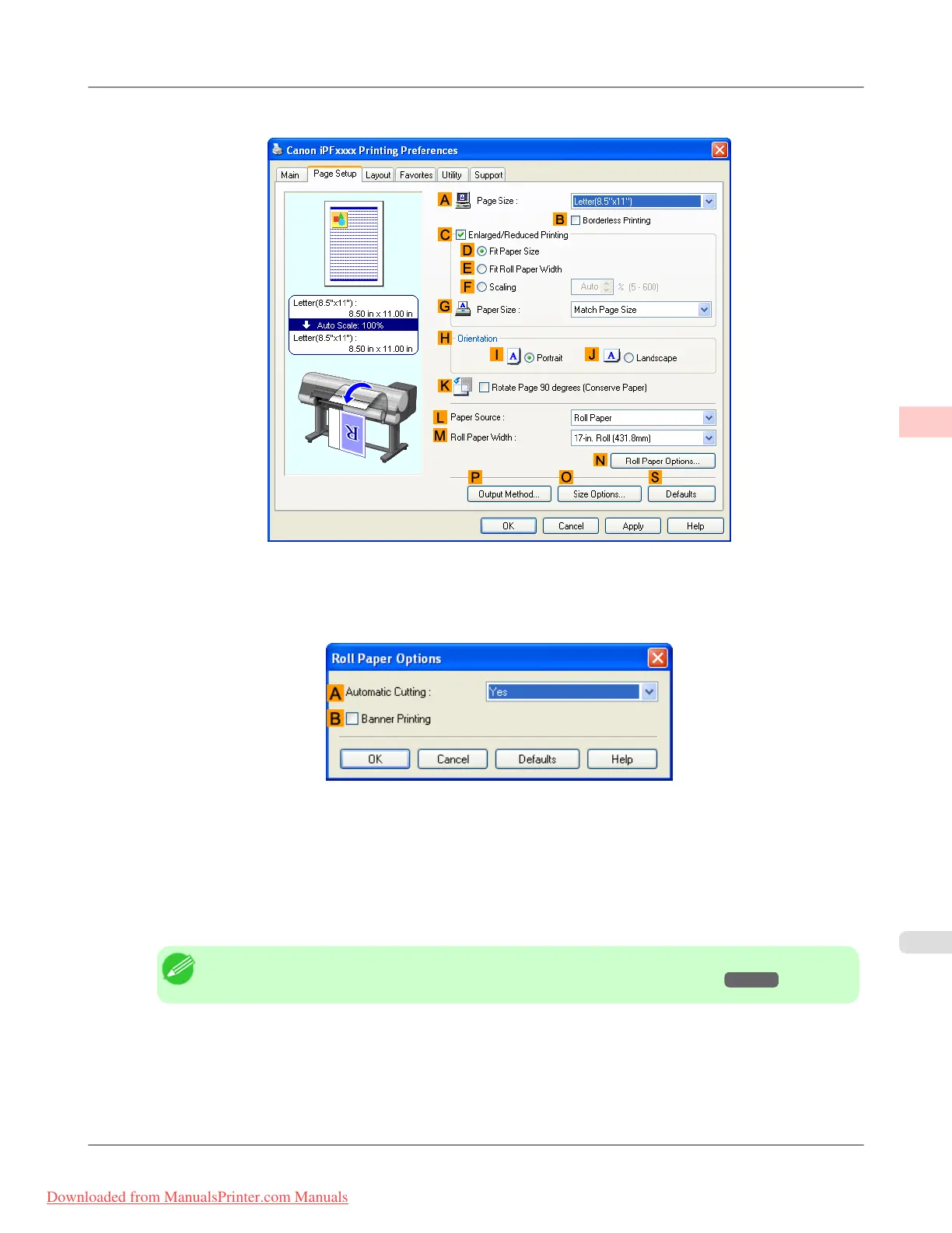 5. Click N Roll Paper Options to display the Roll Paper Options dialog box.