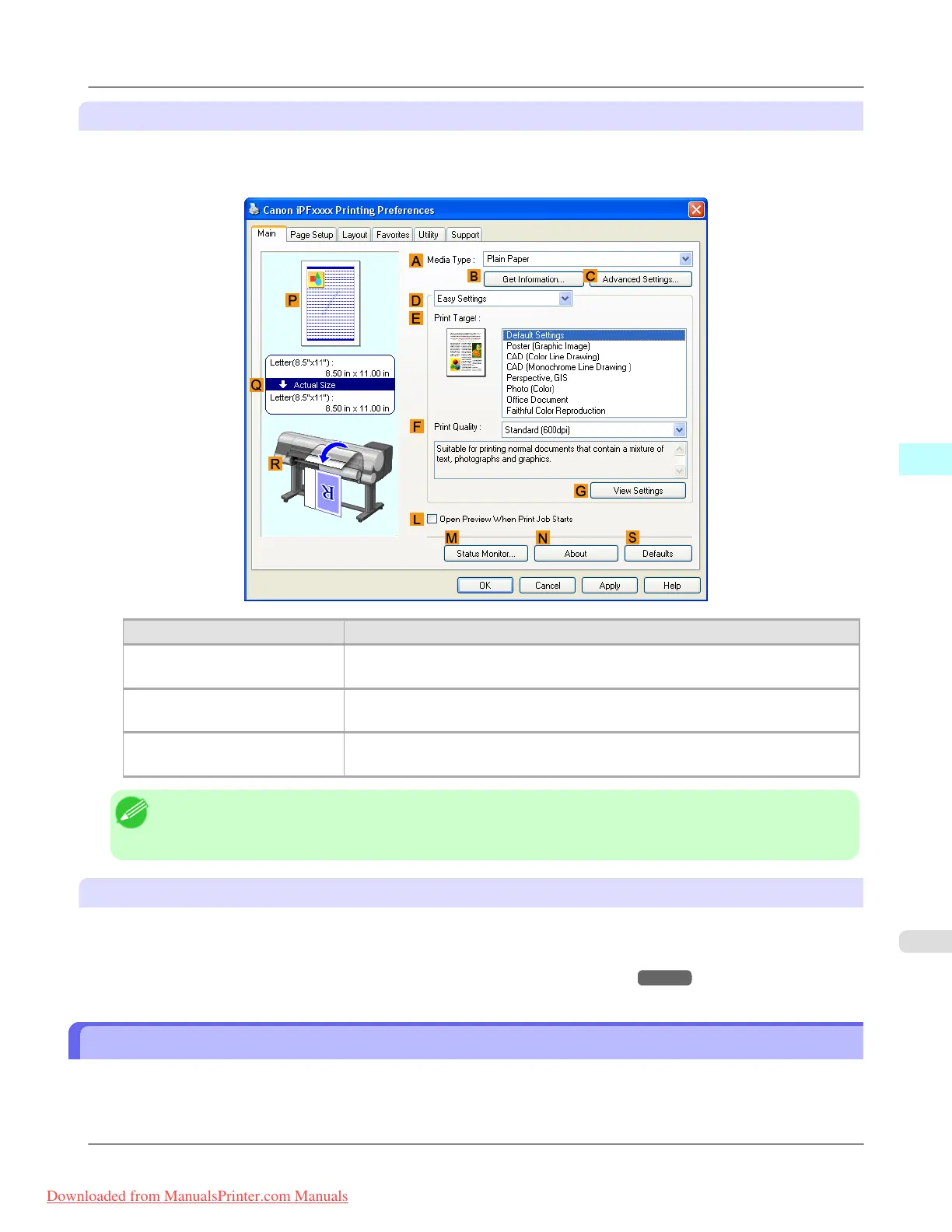 • To confirm the Print Target specified in Easy Settings, click G View Settings on the Main sheet to display