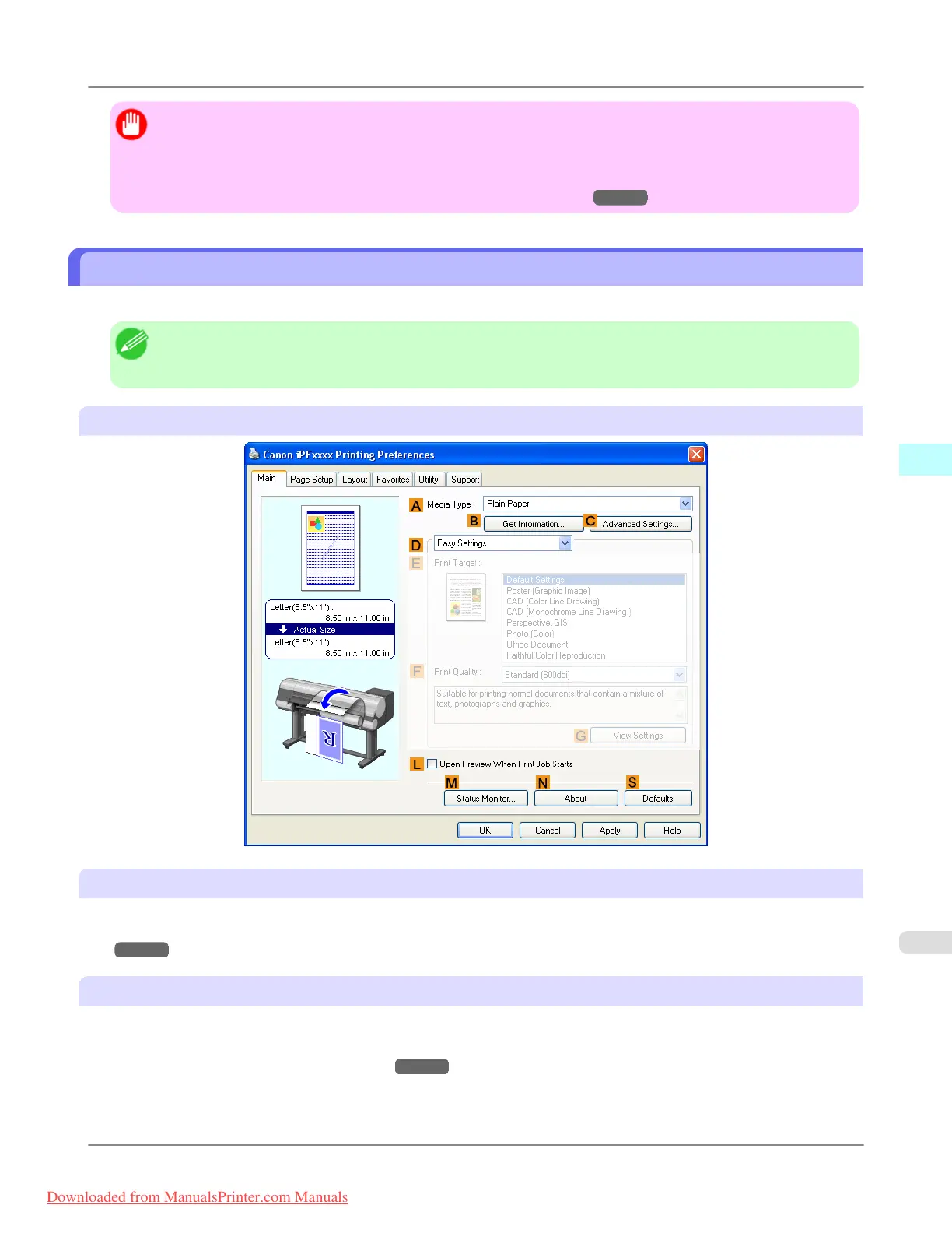 the Main sheet, choose Easy Settings to specify basic print settings based on the particular printing ap-
