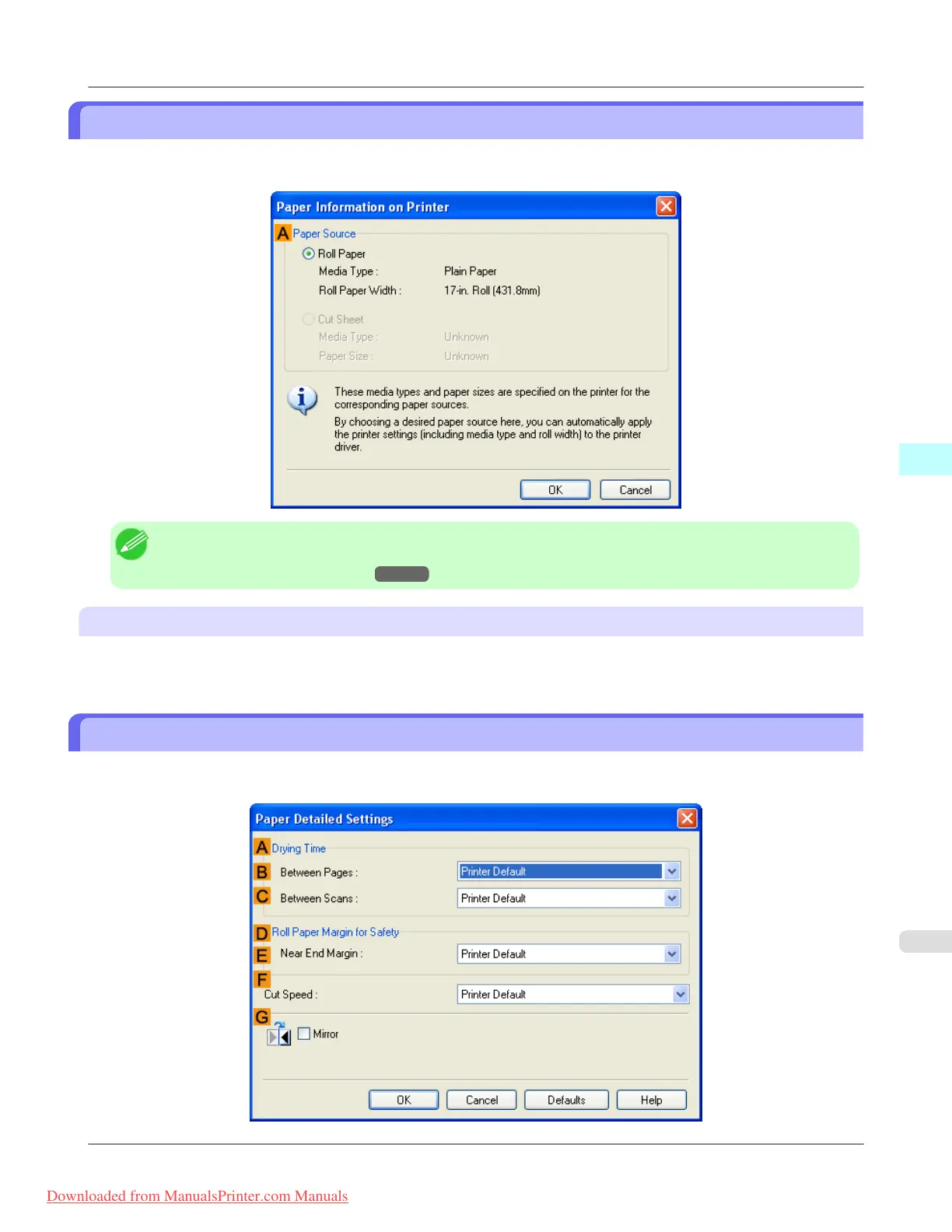 On the Paper Information on Printer dialog box, you can obtain information on the paper in the printer and configure