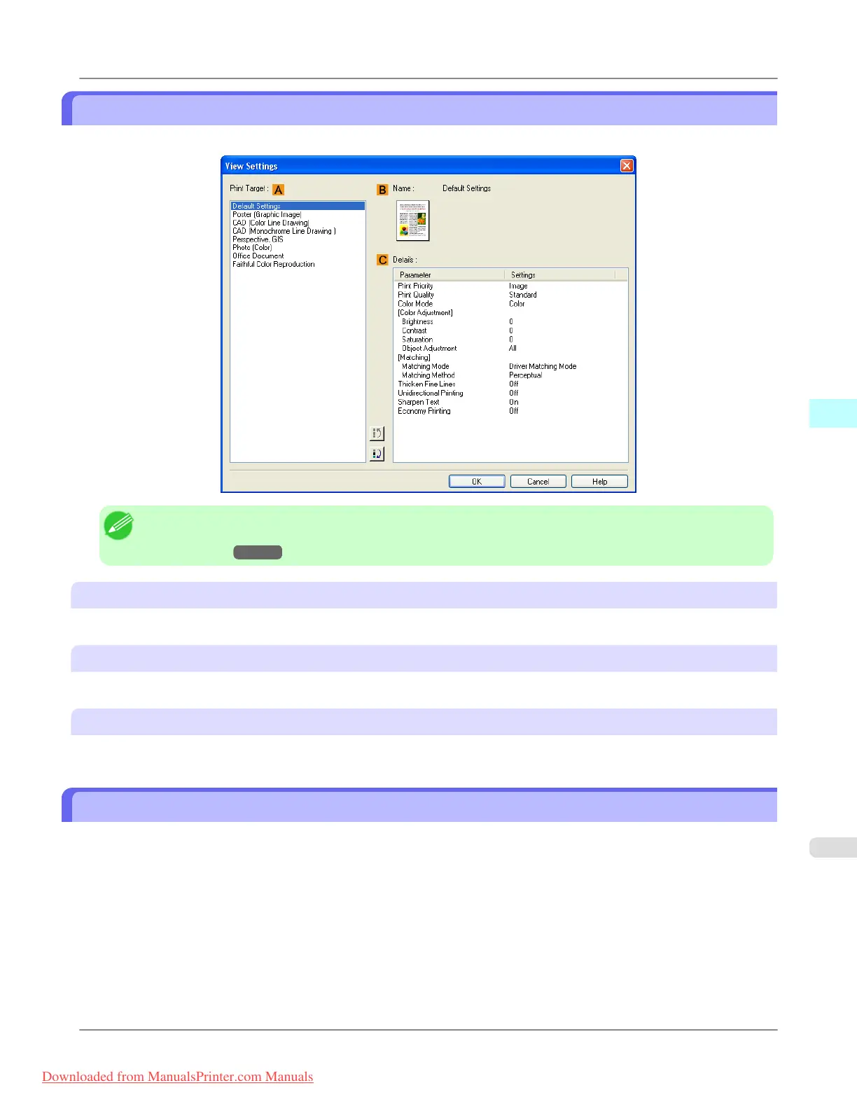 iPF815 View Settings Dialog Box for the Printing Application